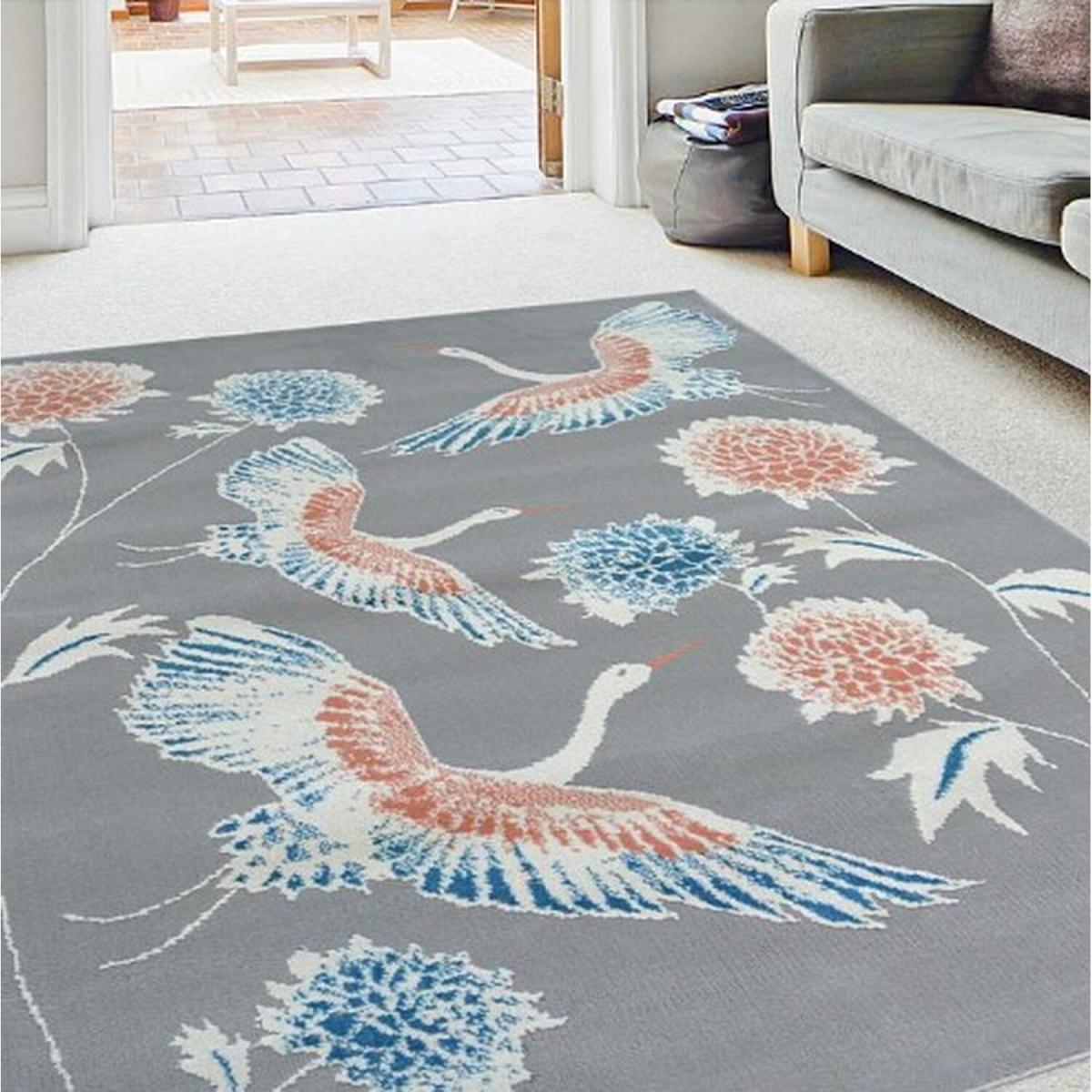 Colourful Bird Print with Grey Contemporary Area Rugs - Dorsey - Grey