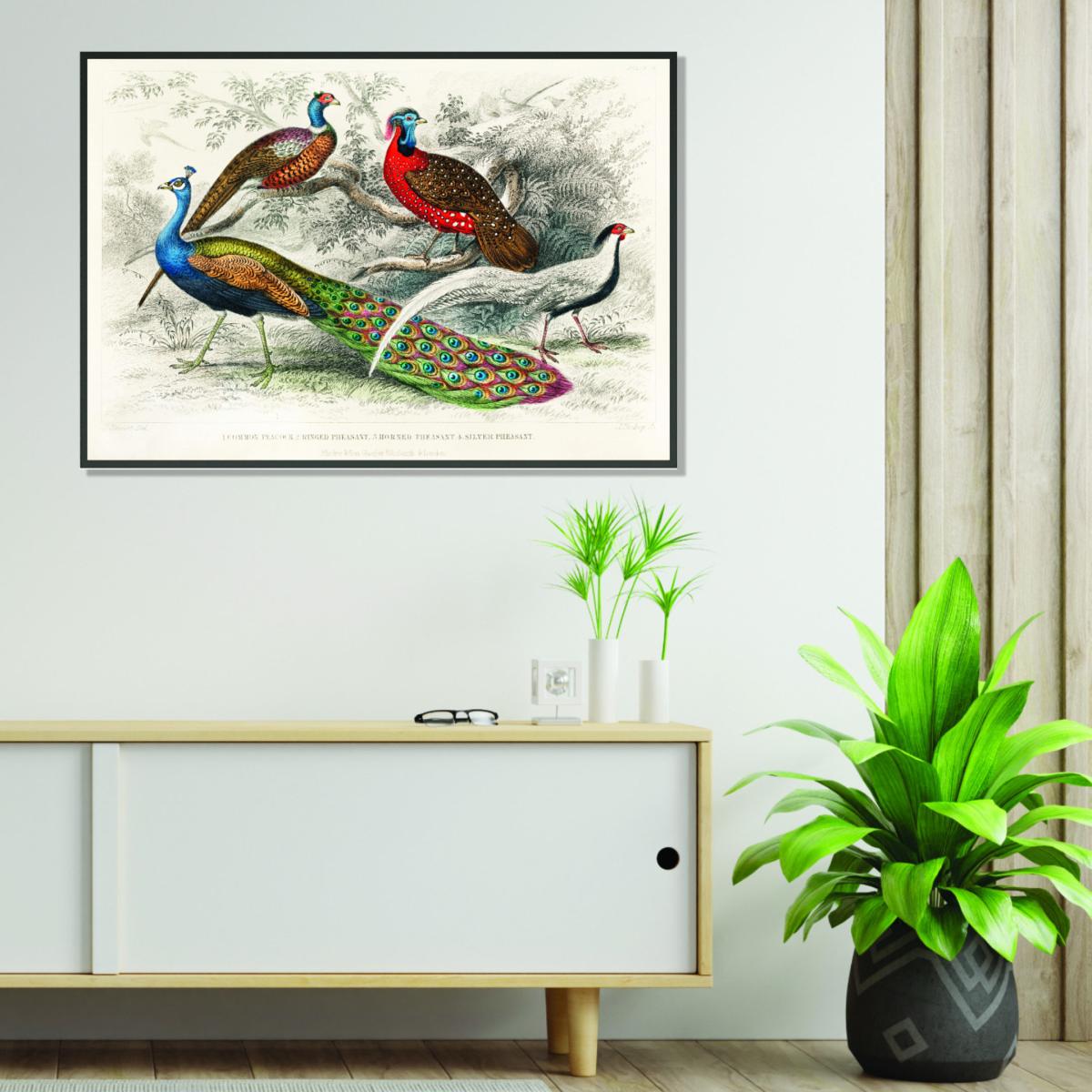 I love this print for its vibrant colours and playful depiction of birds, which can inject a lively charm into a variety of interiors. It's particularly suited to eclectic or boho spaces, where the bold palette can complement other colourful accessories. In more pared-back settings, it works best as a statement piece - perhaps above a neutral sofa or in a hallway to bring instant visual interest. Practical styling tips include pairing it with simple frames to highlight the artwork or grouping it with other nature-inspired prints for a cohesive look. Overall, it’s a fun and eye-catching addition that celebrates colour and personality.