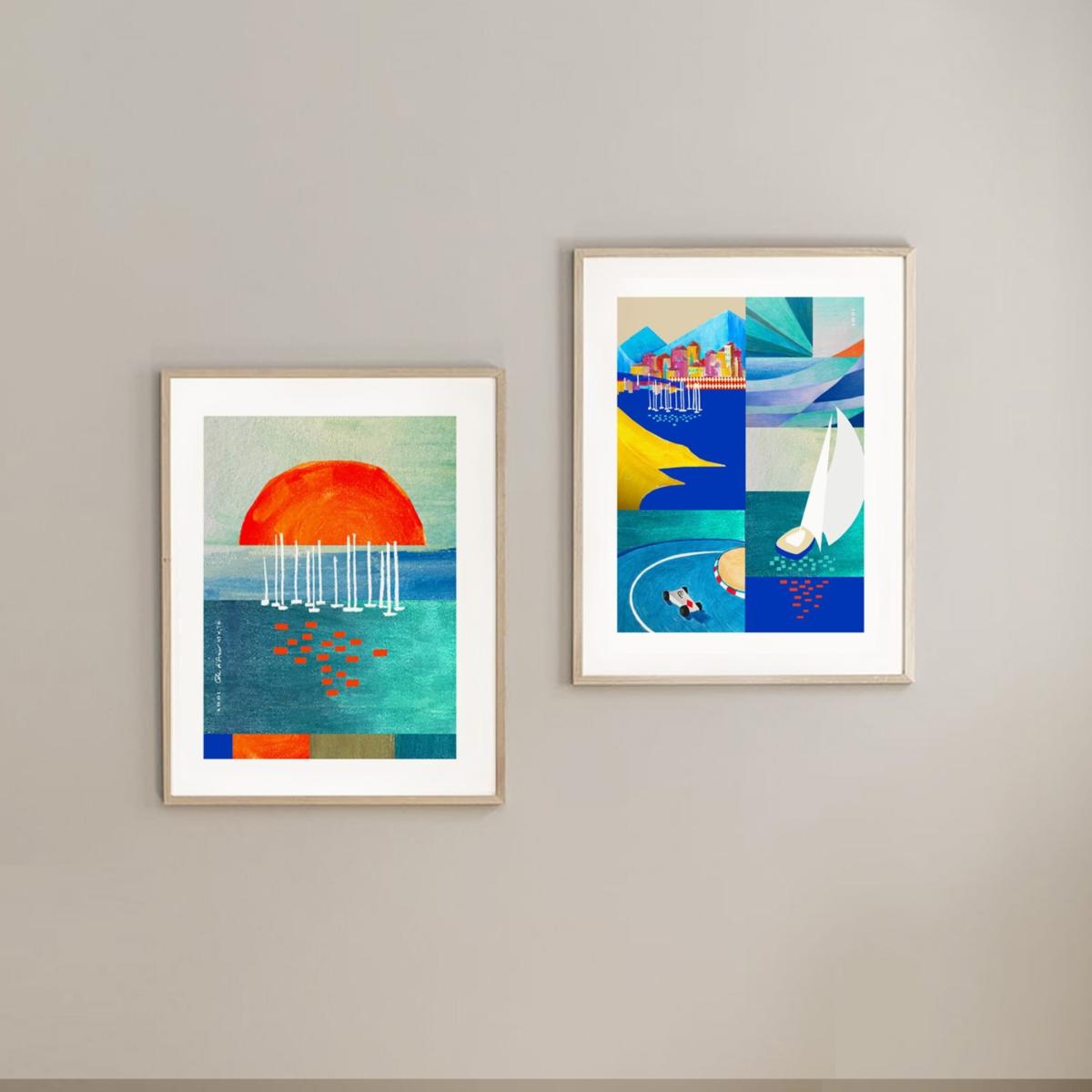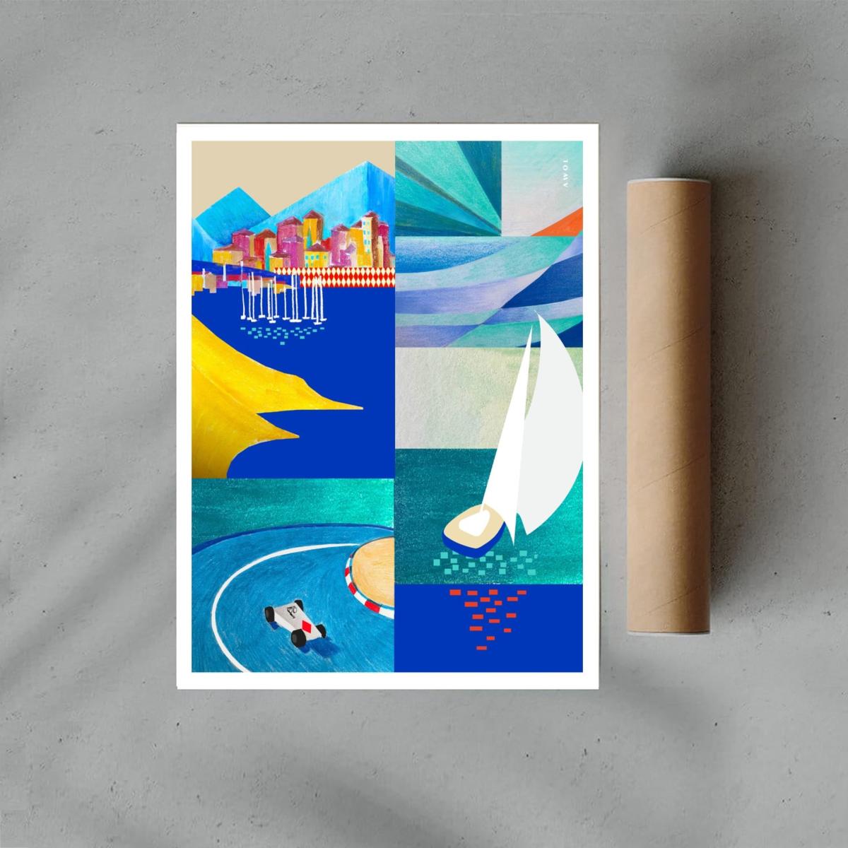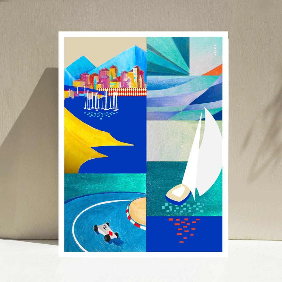 This colourful travel art print is inspired by the bright landscapes, blue sea, coastal port towns, sailboats bobbing in the wind and happy vacation vibes year-round on the Côte d'Azur. The drive along the Mediterranean coastline in the South of France is one of the most beautiful places in the world. Inspired by the postcard perfect beauty of the French Riviera – and the fast cars driving along this coastal destination famous for slow-living, beauty and pleasure, this South of France travel illustration will add a bold, modern and happy touch to your home décor. Mix and match multiple art prints from the French Riviera Collection to create an eclectic travel gallery in your favourite room. Hand painted and printed on premium Canadian paper.