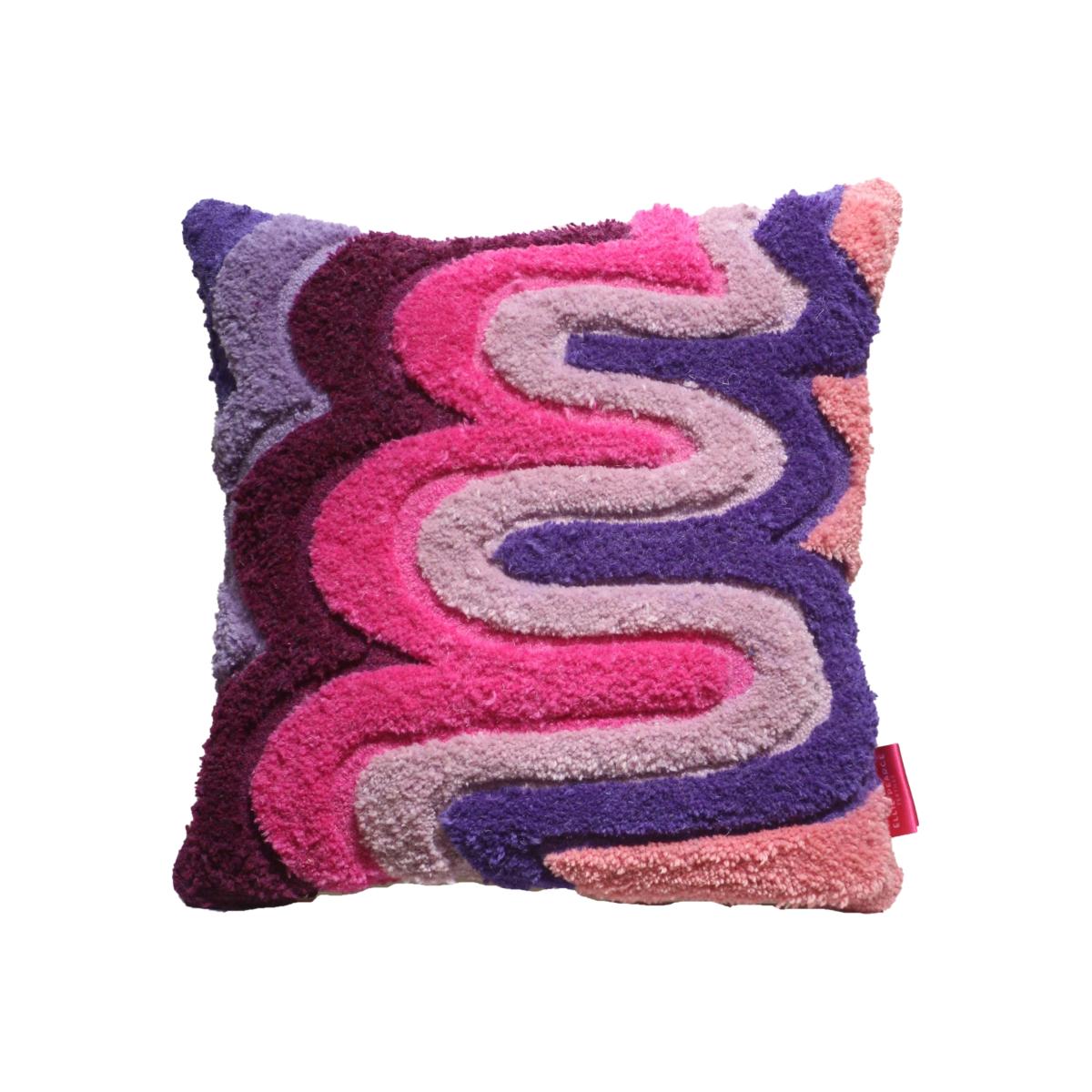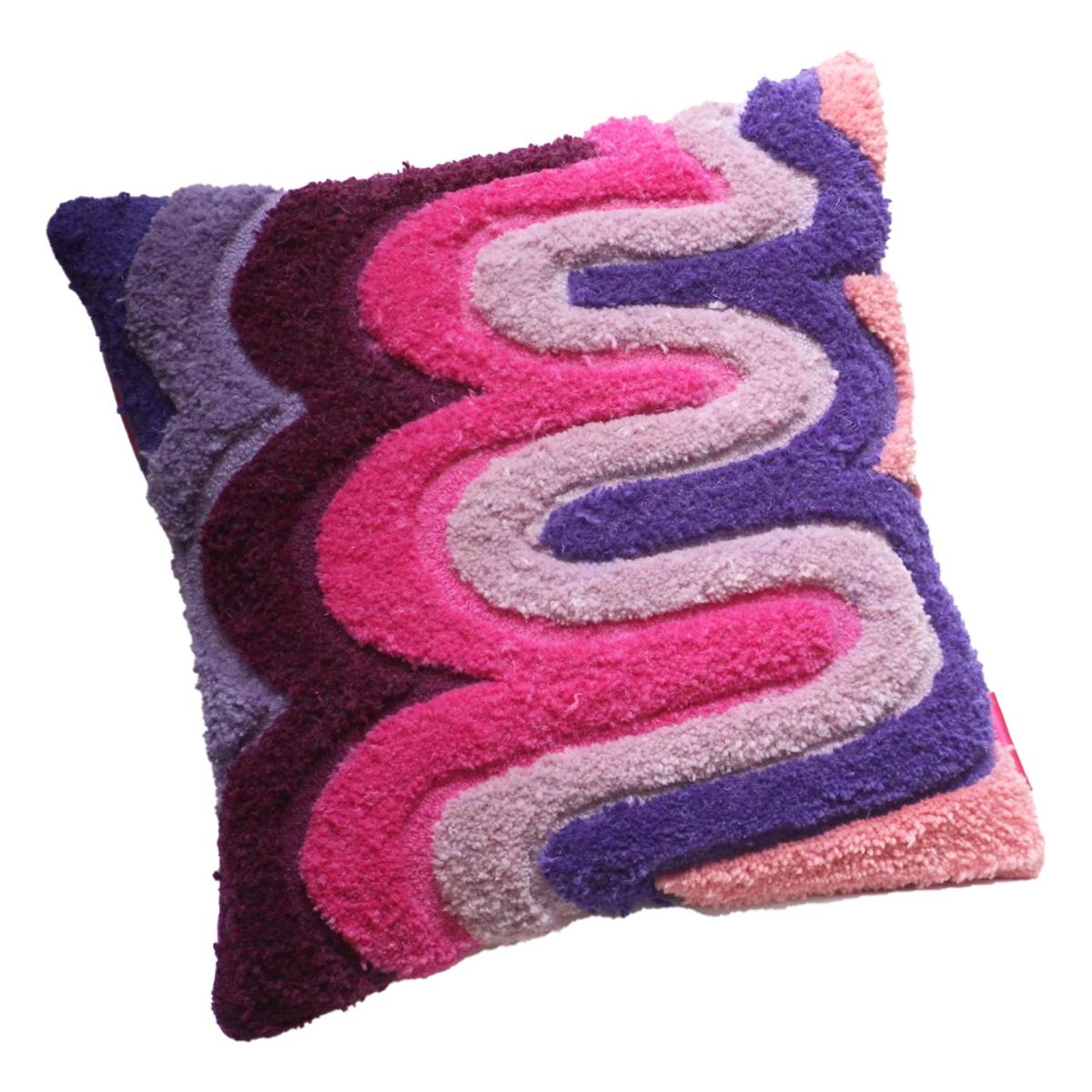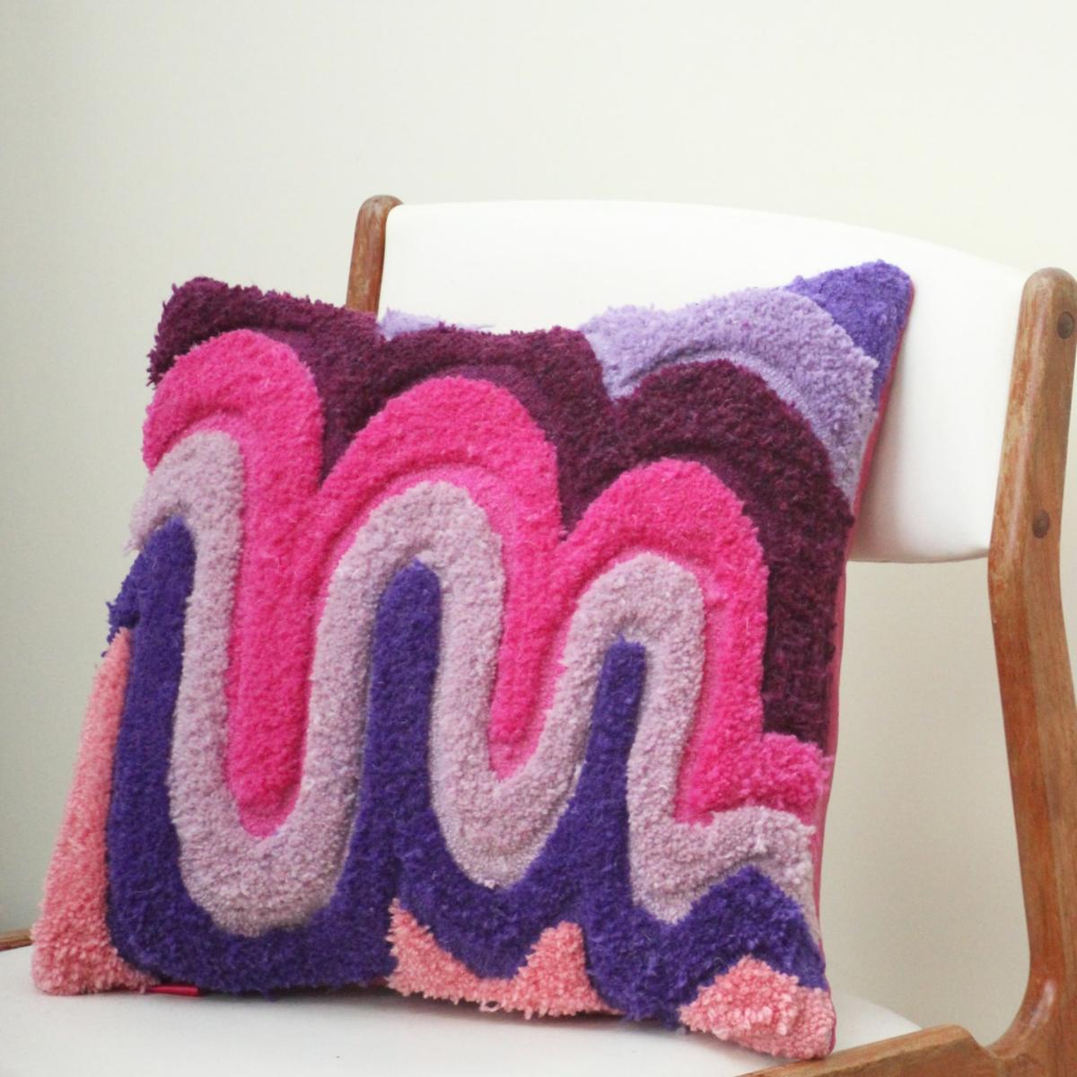 Colourful Tufted Cushion - Purple Wavy Unique Ellie Pearce Textiles
