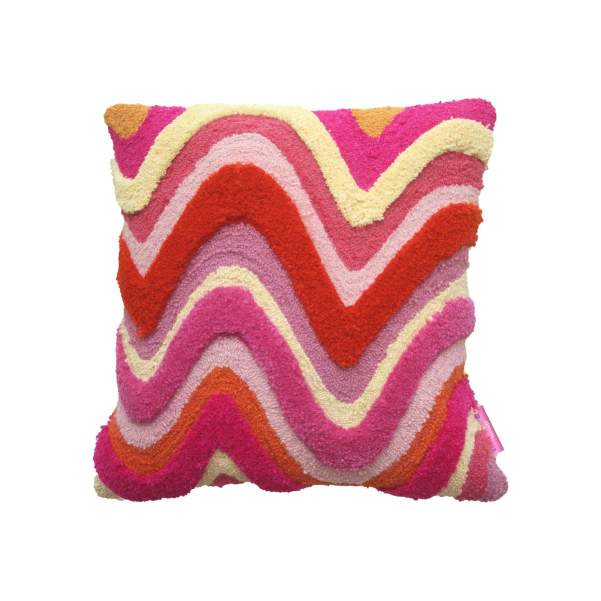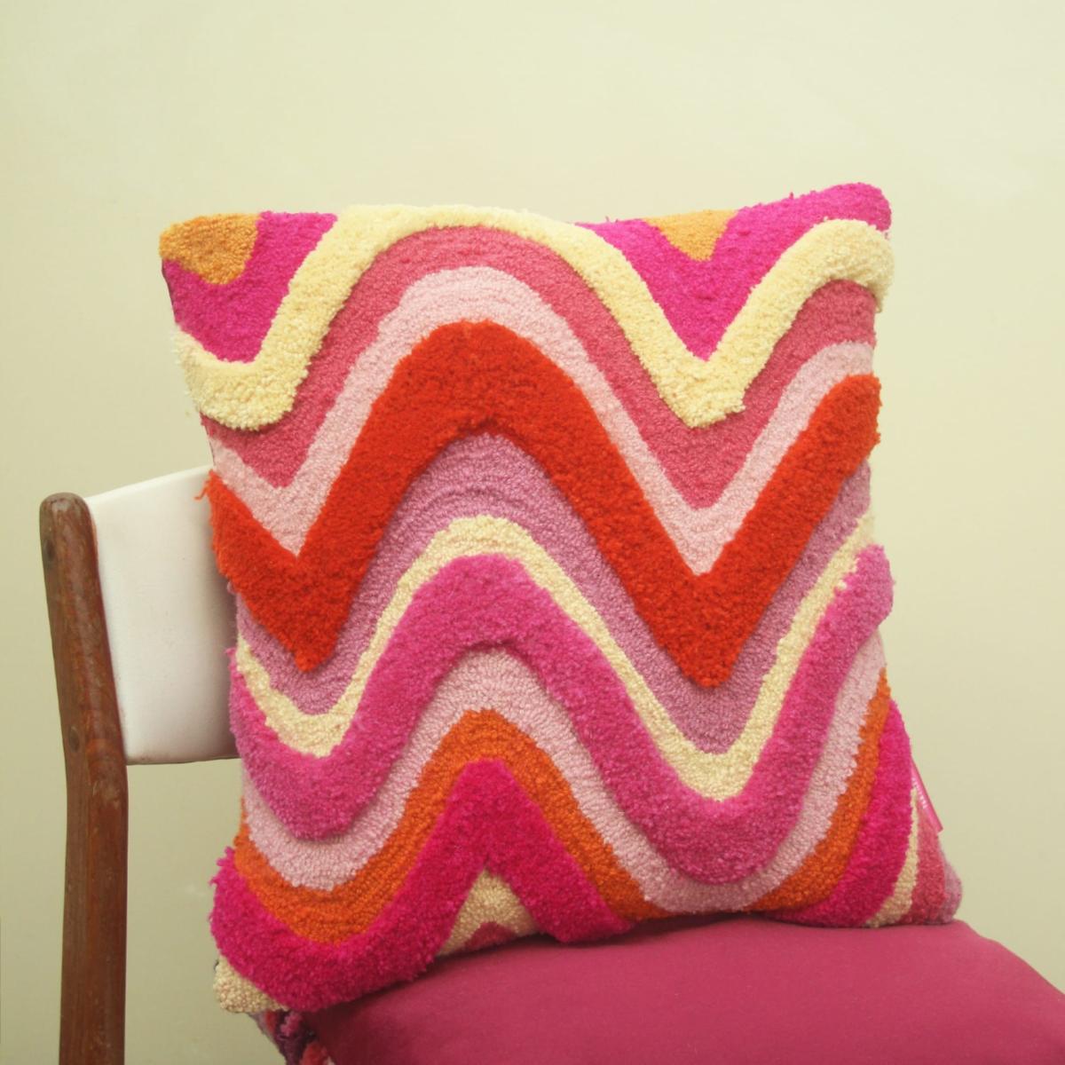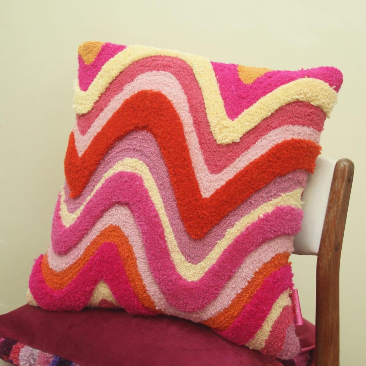 Colourful Tufted Cushion - Yellow & Orange Wavy Unique Ellie Pearce Textiles