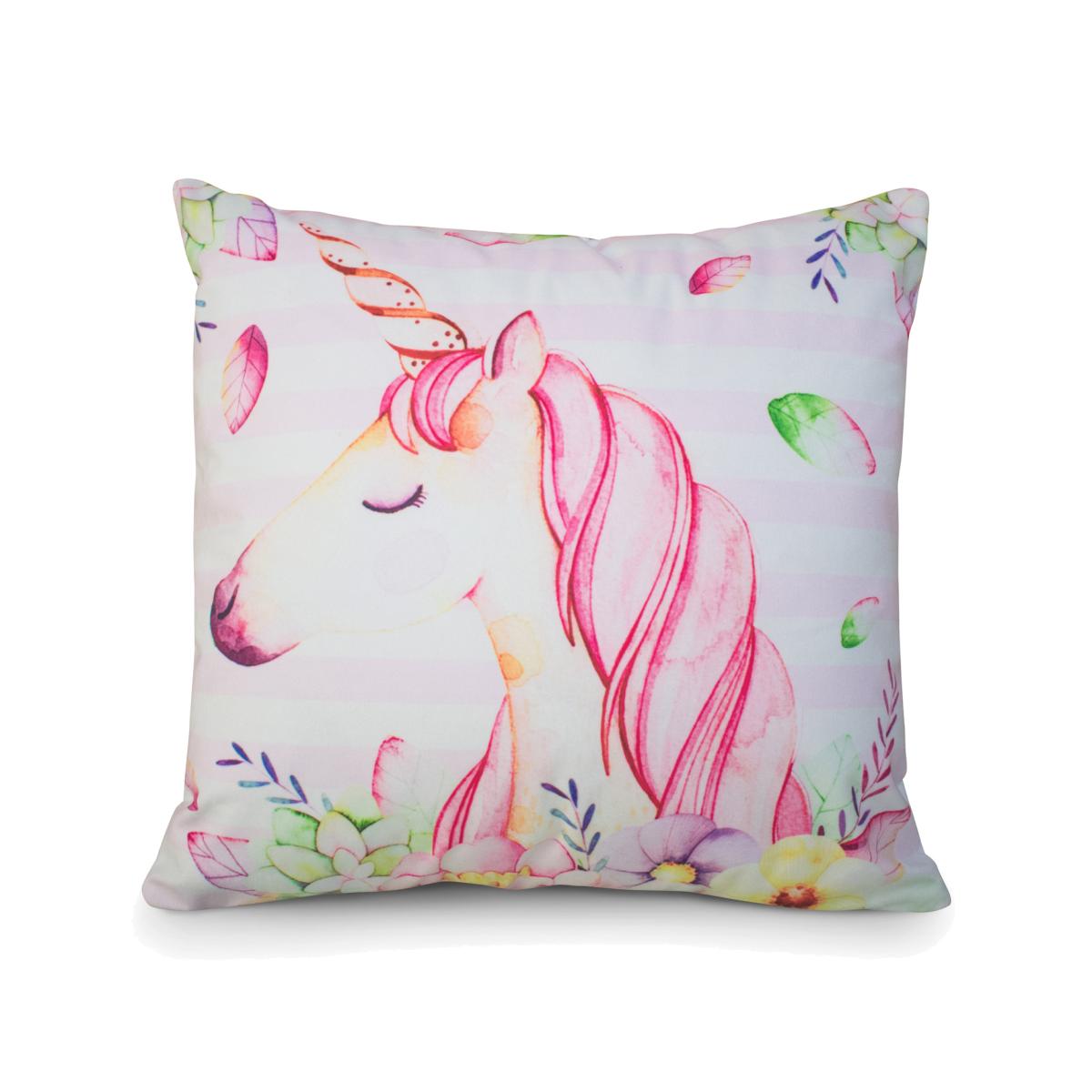 Colourful Unicorn Stripe Printed Cushion - Pink