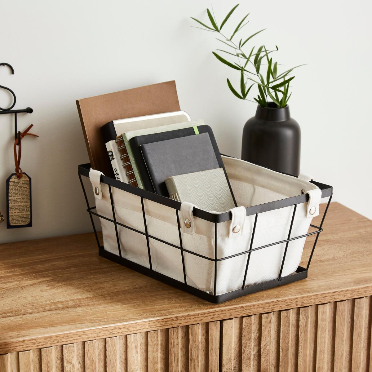 * Easy storage* With removable liner* Compact living Looking for a tidier desk space? Well our Colten Wire Basket might be a great solution for space saving and de-cluttering on your desk! This storage basket has been crafted with removable liner and has a generous capacity.