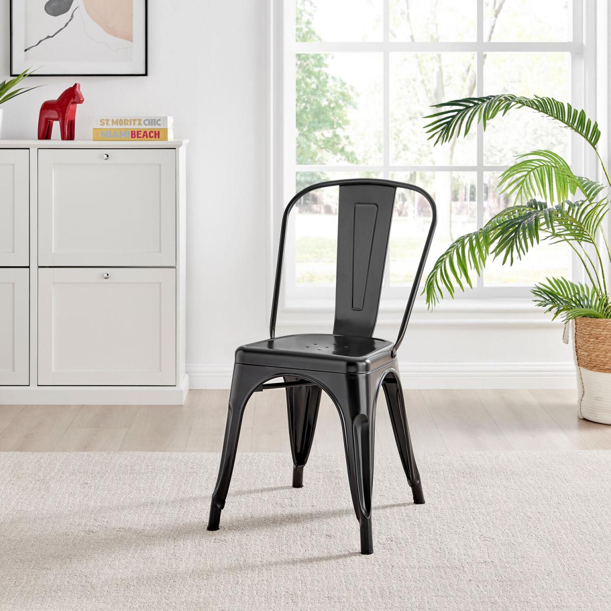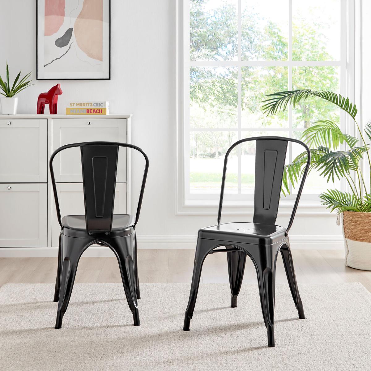 Our Colton metal dining chairs (pair of 2) are stackable, stylish and made of steel. We love versatile dining room furniture and these are just the ticket. Our take on the classic Tolix mid century chair design created for commercial seating at restaurants, these chairs are designed to be comfy to sit on for longer periods, are lightweight, durable and easy to move around. They perfectly capture that laid back bistro cafe vibe and will look fab in your Industrial style kitchen or dining area. The simple solid colour will also suit more sleek minimalist modern home styles, or add some contrast to a bold scheme. Constructed from hard-wearing steel, powder coated in semi-glossy finish, with non-slip pads to the feet. We offer these dining room chairs in a range of colours, and in matching bar stool options too, so check out the full Colton range.