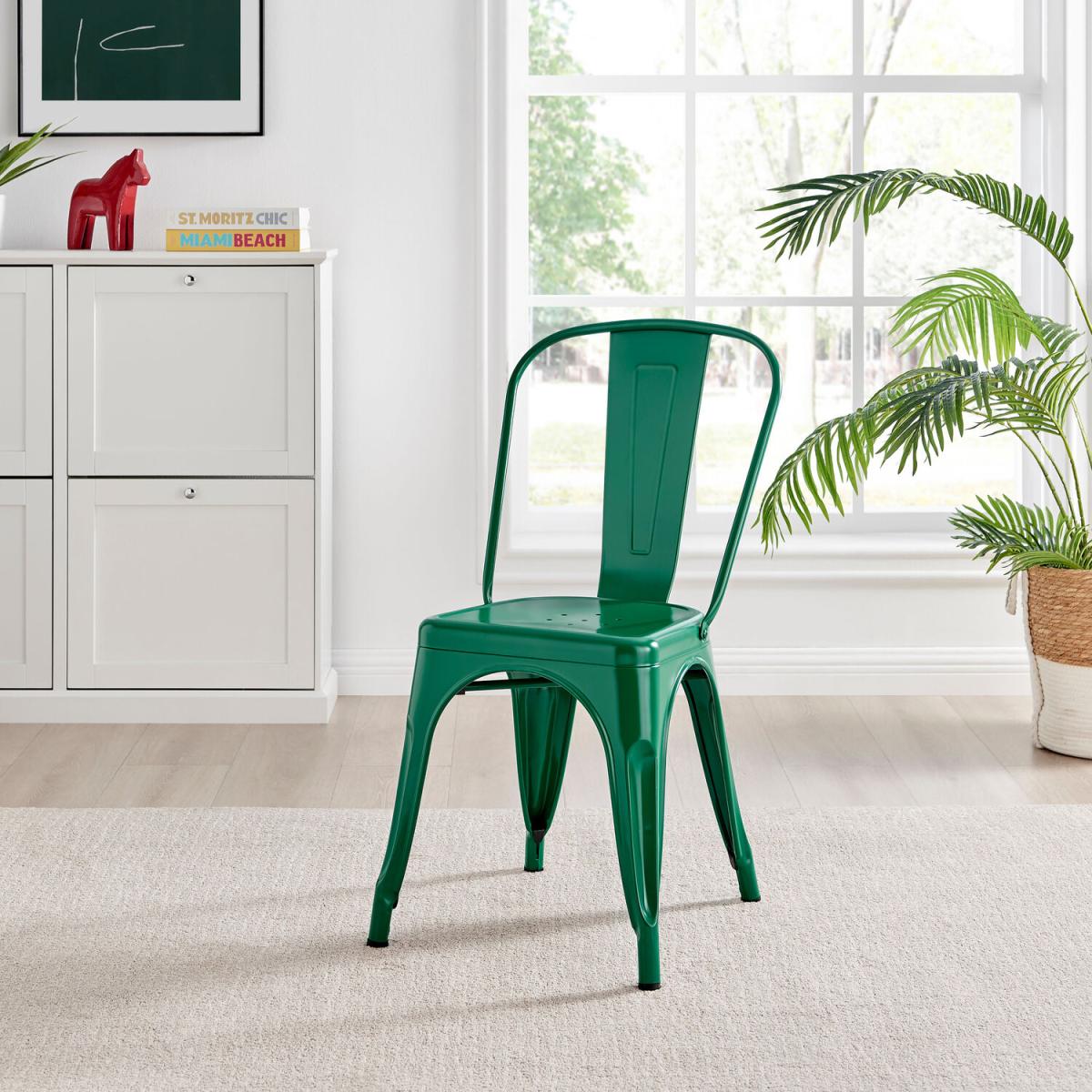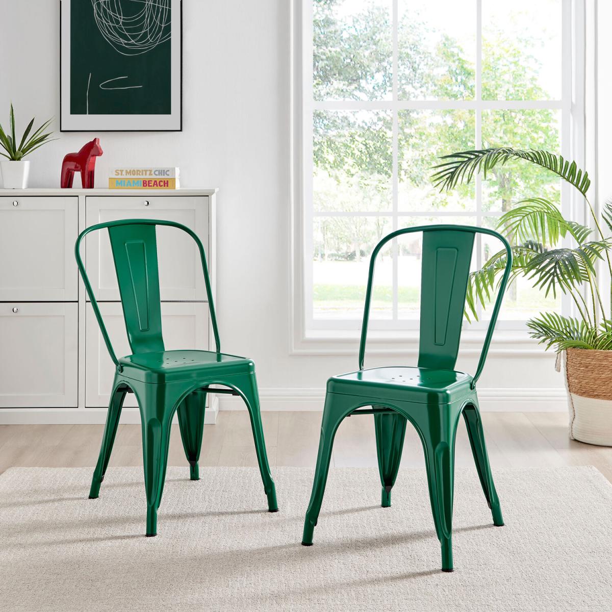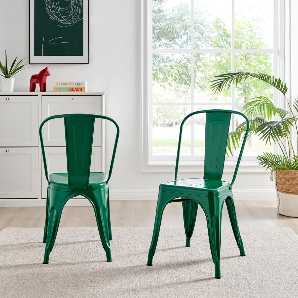 Our Colton metal dining chairs (pair of 2) are stackable, stylish and made of steel. We love versatile dining room furniture and these are just the ticket. Our take on the classic Tolix mid century chair design created for commercial seating at restaurants, these chairs are designed to be comfy to sit on for longer periods, are lightweight, durable and easy to move around. They perfectly capture that laid back bistro cafe vibe and will look fab in your Industrial style kitchen or dining area. The simple solid colour will also suit more sleek minimalist modern home styles, or add some contrast to a bold scheme. Constructed from hard-wearing steel, powder coated in semi-glossy finish, with non-slip pads to the feet. We offer these dining room chairs in a range of colours, and in matching bar stool options too, so check out the full Colton range.