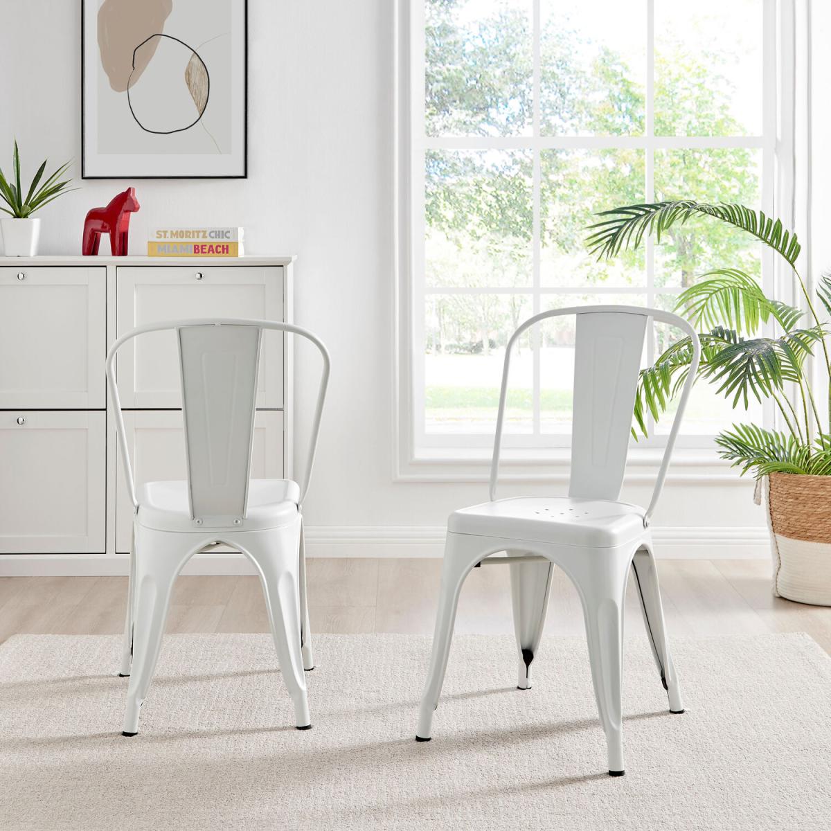 Our Colton metal dining chairs (pair of 2) are stackable, stylish and made of steel. We love versatile dining room furniture and these are just the ticket. Our take on the classic Tolix mid century chair design created for commercial seating at restaurants, these chairs are designed to be comfy to sit on for longer periods, are lightweight, durable and easy to move around. They perfectly capture that laid back bistro cafe vibe and will look fab in your Industrial style kitchen or dining area. The simple solid colour will also suit more sleek minimalist modern home styles, or add some contrast to a bold scheme. Constructed from hard-wearing steel, powder coated in semi-glossy finish, with non-slip pads to the feet. We offer these dining room chairs in a range of colours, and in matching bar stool options too, so check out the full Colton range.