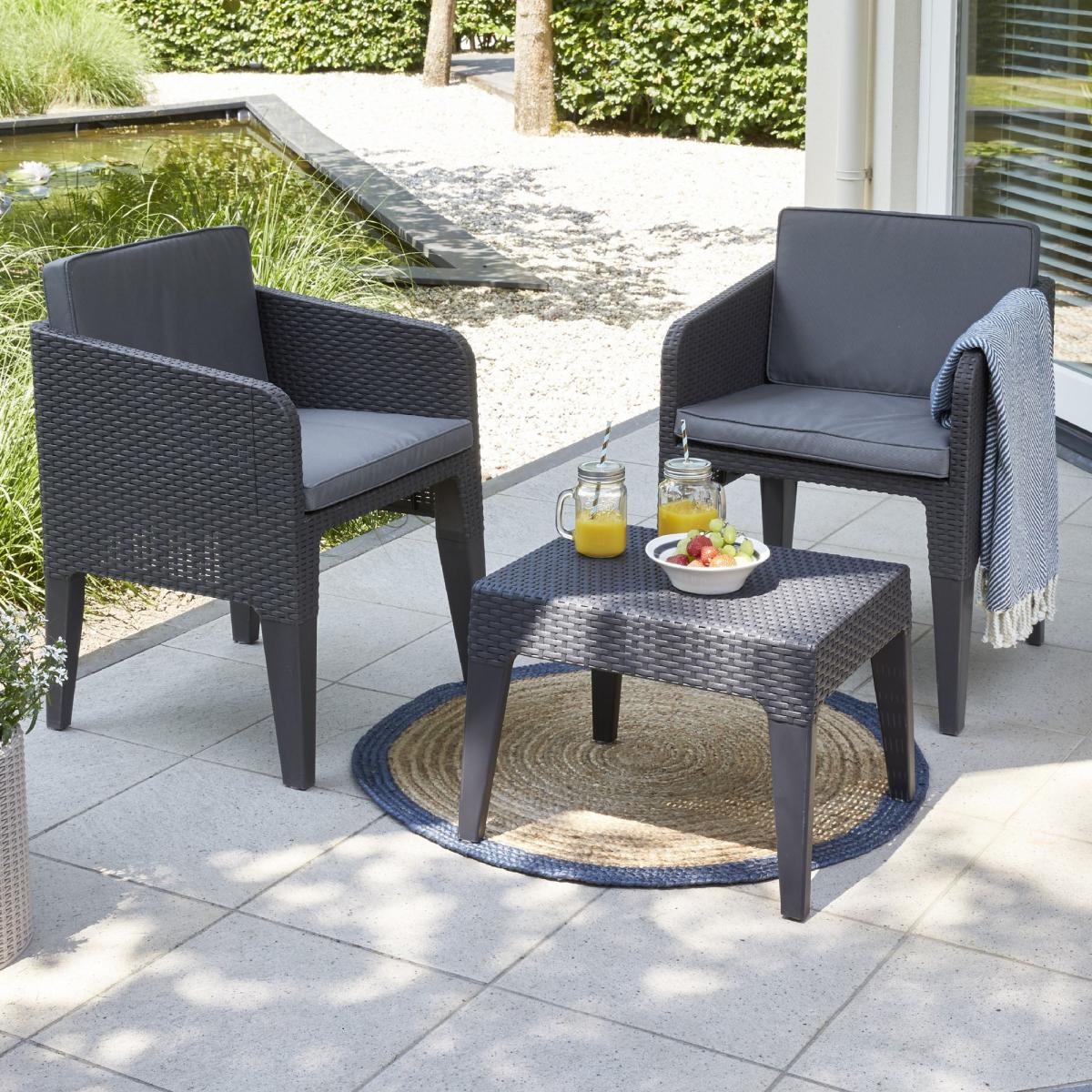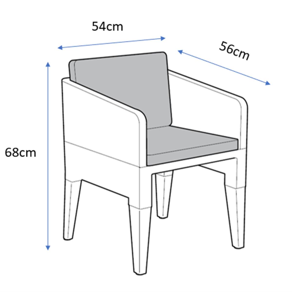 If you have a smaller outdoor space, this set will be a perfect addition so you can relax in your garden as the sun sets. This wood-look open slat structured set is the perfect addition to your outdoor area. The set has been made from UV and weather resistant resin which means it will last you from summer to summer. The cushions are super comfortable to rest upon after a hard day's work. Just remember that the cushions need to be brought indoors in case of a rain shower. Care Instructions:Frames - Using a soapy water and a damp cloth, thoroughly wipe the surface of the frames. Cushions - Do not wash or dry clean. Keep indoors or stored away when not in use.