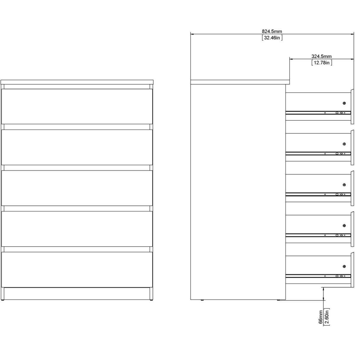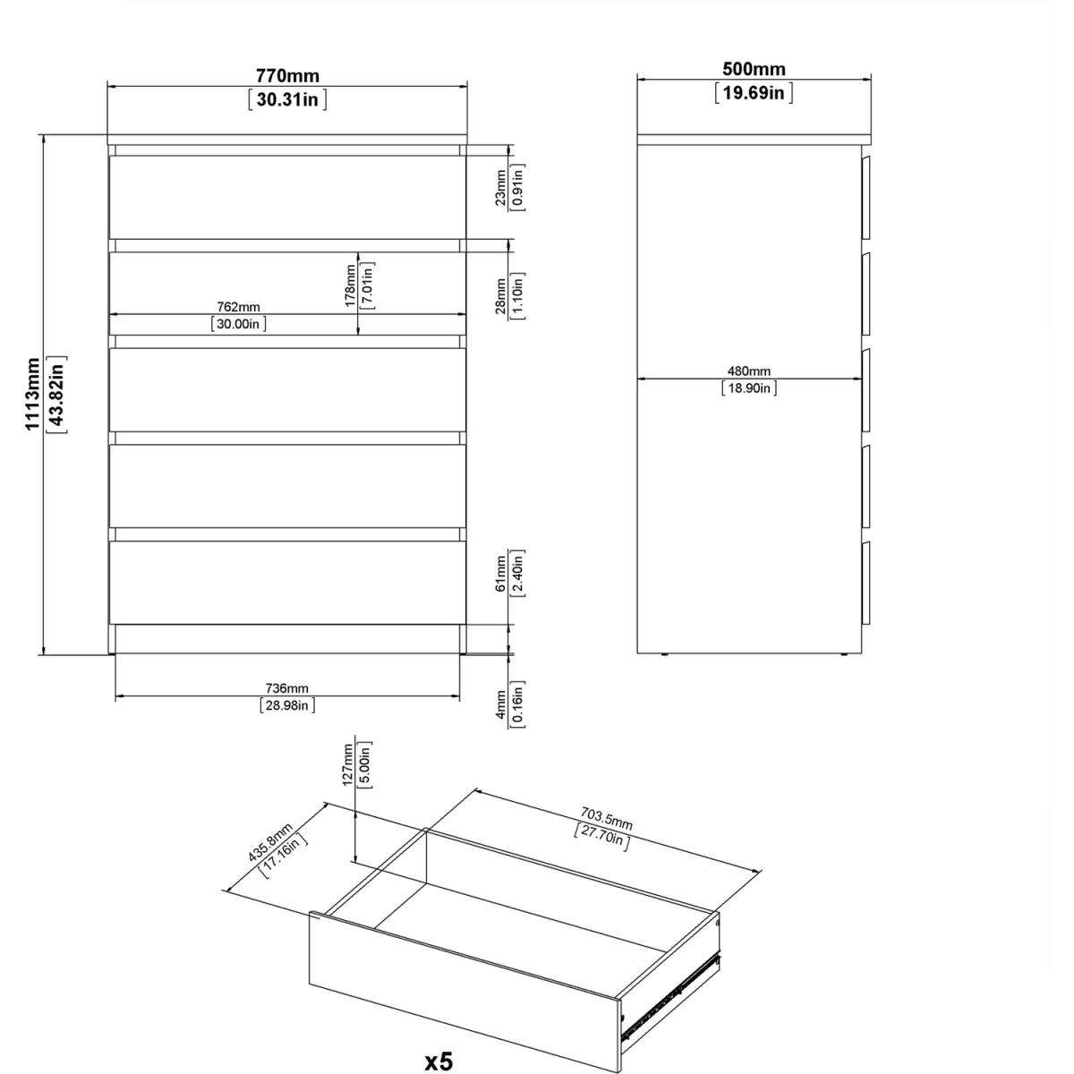 Columbia Chest of Five Drawers - Black Matt
