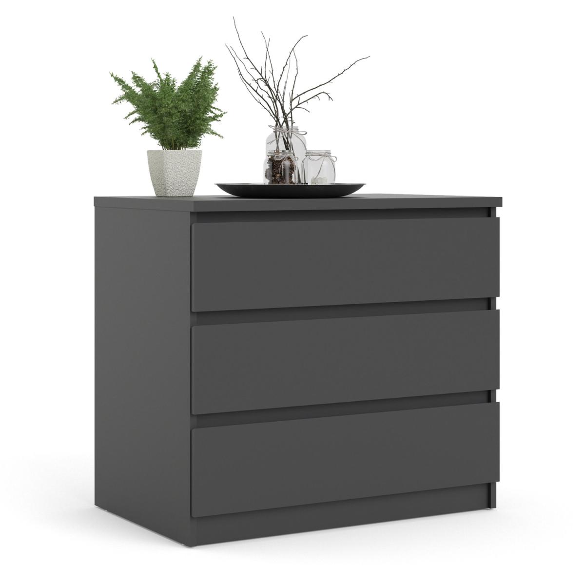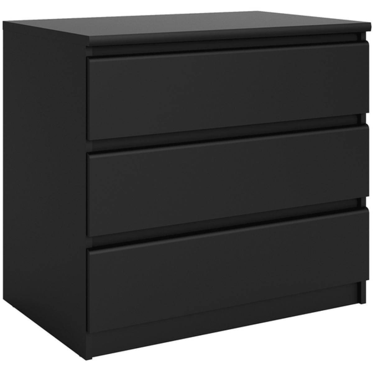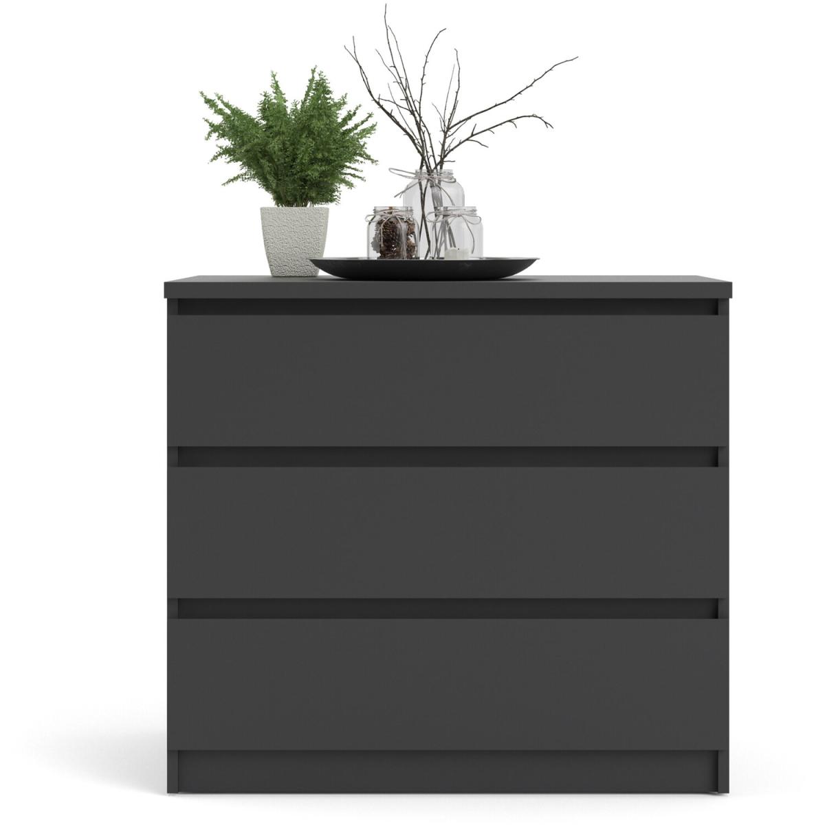 I’m a big fan of this black three-drawer chest for its clean lines and matt finish - it’s a quietly sophisticated storage piece that slides into modern, minimalist or industrial schemes without fuss. In a bedroom it’s perfect beside a bed dressed in pale linens, while in a hallway it doubles as a neat catch-all for keys and mail. Styling tip: keep the top uncluttered with just a low-profile lamp, a small potted plant and a couple of stacked books or a shallow decorative tray. The matt surface also takes metal accents really well, so a brass frame or sculptural vase adds a smart contrast.