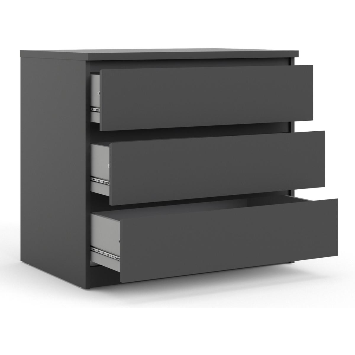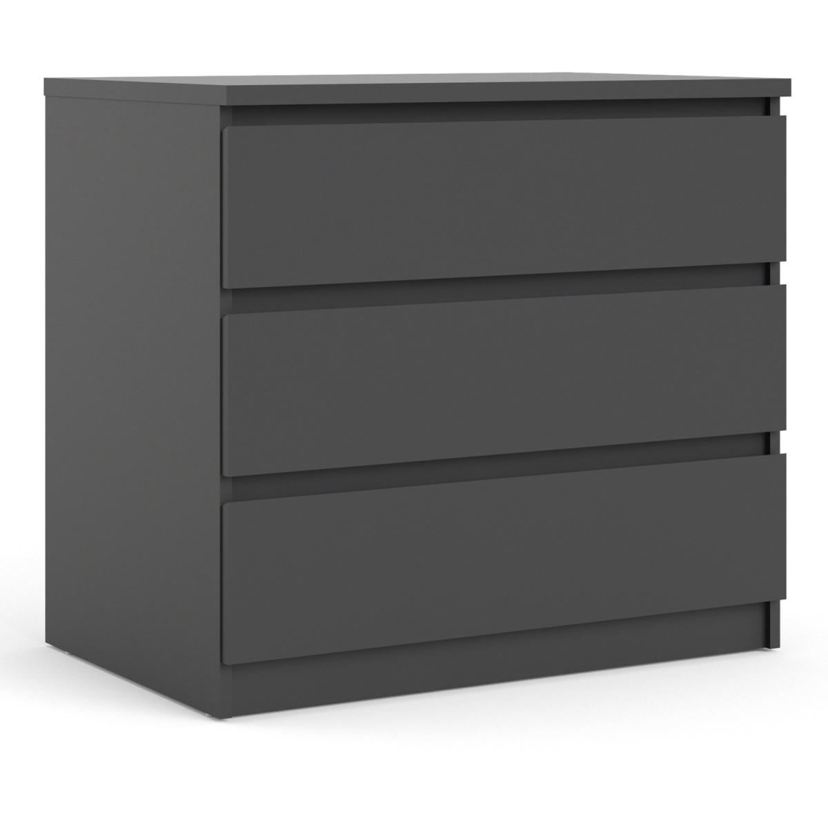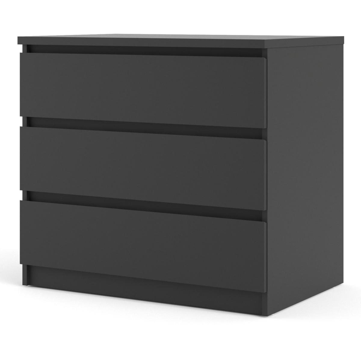 I’m a big fan of this black three-drawer chest for its clean lines and matt finish - it’s a quietly sophisticated storage piece that slides into modern, minimalist or industrial schemes without fuss. In a bedroom it’s perfect beside a bed dressed in pale linens, while in a hallway it doubles as a neat catch-all for keys and mail. Styling tip: keep the top uncluttered with just a low-profile lamp, a small potted plant and a couple of stacked books or a shallow decorative tray. The matt surface also takes metal accents really well, so a brass frame or sculptural vase adds a smart contrast.