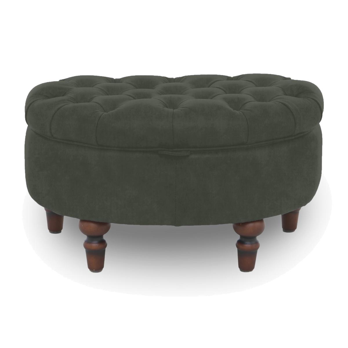 Few pieces of furniture are as timeless as the Chesterfield sofa. A striking look for both traditional and contemporary settings, the Chesterfield’s authentic details – beautifully showcased in our Columbus range of sofas, armchairs and footstools – epitomise handcrafted British style. In this range, you’ll find hand-tied buttoning, rolled arms, turned wood legs with castors, as well as modern comfort features including pocket spring seat cushioning. This versatile collection includes several sizes of sofas, styles of armchairs and shapes of footstools, making it ideal for every home, large and small. Offered in both luxurious fabric and 100% leather upholstery, the Columbus range is handcrafted exclusively for Furniture Village. Make a quiet statement with this stylish and distinctive half-moon-shaped Chesterfield footstool with authentic hand-tied buttoning and turned wooden feet. Why you'll love it Authentic Chesterfield style for the coolest of contemporary homes. This handmade half-moon footstool is laden with lavish and iconic details. Hand-tied buttoning is traditionally crafted. Turned wooden legs. Ergonomic shape takes up less room. In a choice of sophisticated colours for the fabric upholstery. Also offered with premium quality 100% leather upholstery. Carefully crafted by hand. Exclusively available at Furniture Village. This fabric half-moon Chesterfield footstool is part of our Columbus range. What you need to know Cushioning: foam. Some fabrics can show wear on areas of more use or in direct sunlight. Clean regularly using a soft brush or vacuum with the curtain attachment. Deal with any spills promptly. Professional cleaning advised for oil- and grease-based stains. Please read our upholstery care guide for more advice.