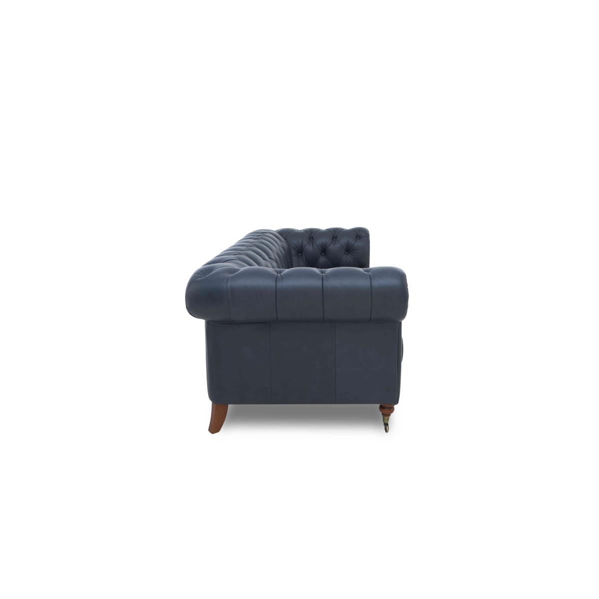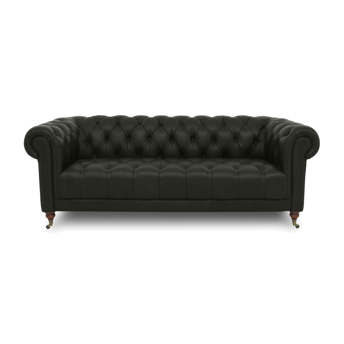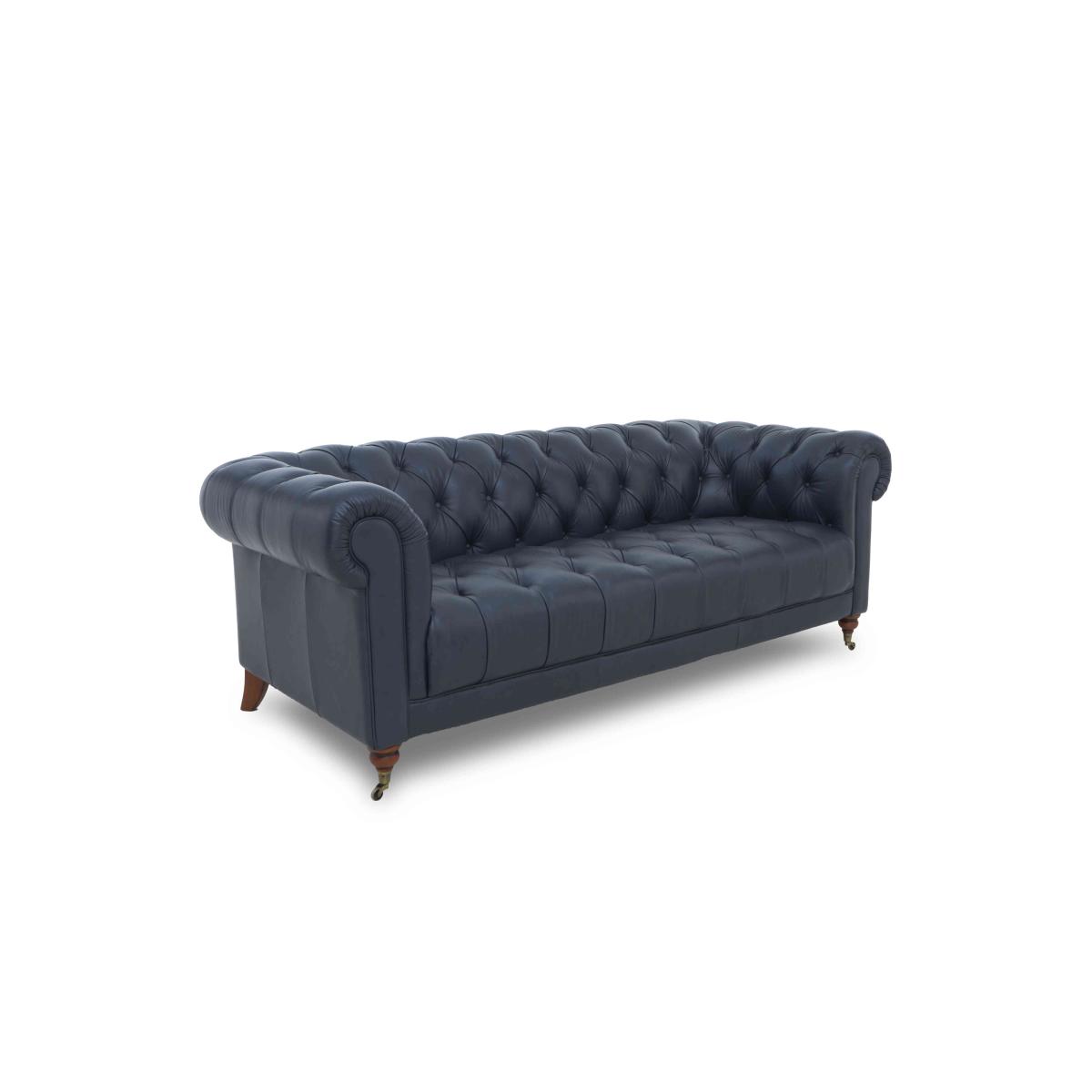Few pieces of furniture are as timeless as the Chesterfield sofa. A striking look for both traditional and contemporary settings, the Chesterfield’s authentic details – beautifully showcased in our Columbus range of sofas, armchairs and footstools – epitomise handcrafted British style. In this range, you’ll find hand-tied buttoning, rolled arms, turned wood legs with castors, as well as modern comfort features including pocket spring seat cushioning. This versatile collection includes several sizes of sofas, styles of armchairs and shapes of footstools, making it ideal for every home, large and small. Offered in both luxurious fabric and 100% leather upholstery, the Columbus range is handcrafted exclusively for Furniture Village. From its 100% leather upholstery to those iconic Chesterfield details – hand-tied buttoning, turned wooden feet with castors – everything about this three-seater sofa is simply stunning. Why you'll love it Authentic Chesterfield style for the coolest of contemporary homes. This handmade leather sofa is laden with lavish and iconic details. Classic silhouette with supportive back and high rolled arms. Hand-tied buttoning is traditionally crafted. Wonderfully comfortable pocket sprung seat cushioning. Turned wooden front feet are finished with metal castors. This 3-seater sofa is also available without castors. Premium quality 100% leather upholstery in a choice of colours. Carefully crafted by hand. Exclusively available at Furniture Village. This 3-seater leather Chesterfield sofa is part of our Columbus range. What you need to know Medium comfort level. Seat suspension: sinuous spring. Seat cushioning: pocket spring, foam and Dacron. Seat cushioning is fixed. Back suspension: webbing. Back cushioning: fibre. Back cushioning is fixed. Arm cushioning: foam and Dacron. Feet are removable. Leather has unique marks and characteristics with variation in colour and texture. Leather softens with use. Smoothing the tops of leather cushions prevents signs of visual comfort. Please read our upholstery care guide for more advice.