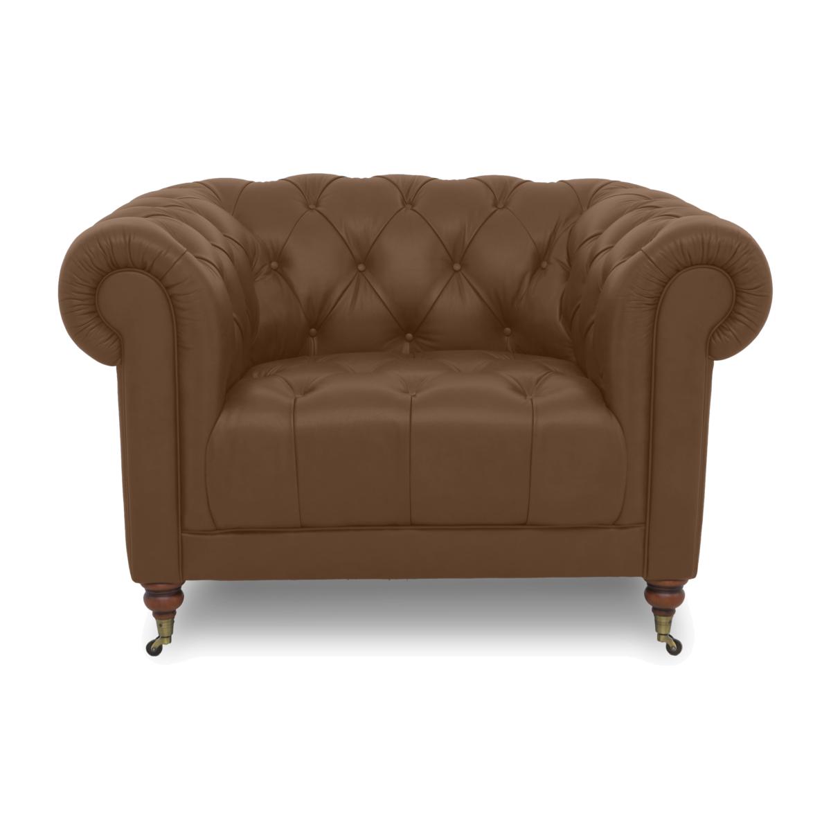 Few pieces of furniture are as timeless as the Chesterfield sofa. A striking look for both traditional and contemporary settings, the Chesterfield’s authentic details – beautifully showcased in our Columbus range of sofas, armchairs and footstools – epitomise handcrafted British style. In this range, you’ll find hand-tied buttoning, rolled arms, turned wood legs with castors, as well as modern comfort features including pocket spring seat cushioning. This versatile collection includes several sizes of sofas, styles of armchairs and shapes of footstools, making it ideal for every home, large and small. Offered in both luxurious fabric and 100% leather upholstery, the Columbus range is handcrafted exclusively for Furniture Village. Upholstered in 100% leather, this Chesterfield armchair is wonderfully comfortable and wonderfully stylish. As well as pocket spring cushioning, it has turned wood legs with castors and buttoning. Why you'll love it Authentic Chesterfield style for the coolest of contemporary homes. This handmade leather armchair is laden with lavish and iconic details. Classic silhouette with supportive back and high rolled arms. Hand-tied buttoning is traditionally crafted. Wonderfully comfortable pocket sprung seat cushioning. Turned wooden front feet are finished with metal castors. This armchair is also available without castors. Premium quality 100% leather upholstery in a choice of colours. Carefully crafted by hand. Exclusively available at Furniture Village. This leather Chesterfield armchair is part of our Columbus range. What you need to know Medium comfort level. Seat suspension: sinuous spring. Seat cushioning: pocket spring, foam and Dacron. Seat cushioning is fixed. Back suspension: webbing. Back cushioning: fibre. Back cushioning is fixed. Arm cushioning: foam and Dacron. Feet are removable. Leather has unique marks and characteristics with variation in colour and texture. Leather softens with use. Smoothing the tops of leather cushions prevents signs of visual comfort. Please read our upholstery care guide for more advice.