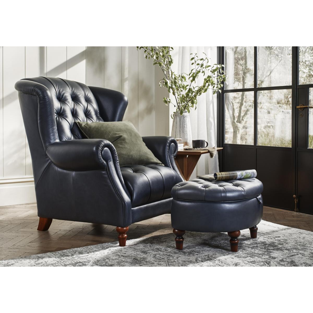 Few pieces of furniture are as timeless as the Chesterfield sofa. A striking look for both traditional and contemporary settings, the Chesterfield’s authentic details – beautifully showcased in our Columbus range of sofas, armchairs and footstools – epitomise handcrafted British style. In this range, you’ll find hand-tied buttoning, rolled arms, turned wood legs with castors, as well as modern comfort features including pocket spring seat cushioning. This versatile collection includes several sizes of sofas, styles of armchairs and shapes of footstools, making it ideal for every home, large and small. Offered in both luxurious fabric and 100% leather upholstery, the Columbus range is handcrafted exclusively for Furniture Village. Bring home a classic in the form of this 100% leather Chesterfield-style wing chair laden with iconic style details. The pocket spring seat cushion is fabulously comfy, too. Why you'll love it Authentic Chesterfield style for the coolest of contemporary homes. This handmade leather wing chair is laden with lavish and iconic details. Classic silhouette with high back, winged sides and rolled arms. Hand-tied buttoning is traditionally crafted. Wonderfully comfortable pocket sprung seat cushioning. Turned wooden front feet. Premium quality 100% leather upholstery in a choice of colours. Carefully crafted by hand. Exclusively available at Furniture Village. This leather Chesterfield wing chair is part of our Columbus range. What you need to know Medium comfort level. Seat suspension: sinuous spring. Seat cushioning: pocket spring, foam and Dacron. Seat cushioning is fixed. Back suspension: webbing. Back cushioning: fibre. Back cushioning is fixed. Arm cushioning: foam and Dacron. Feet are removable. Leather has unique marks and characteristics with variation in colour and texture. Leather softens with use. Smoothing the tops of leather cushions prevents signs of visual comfort. Please read our upholstery care guide for more advice.
