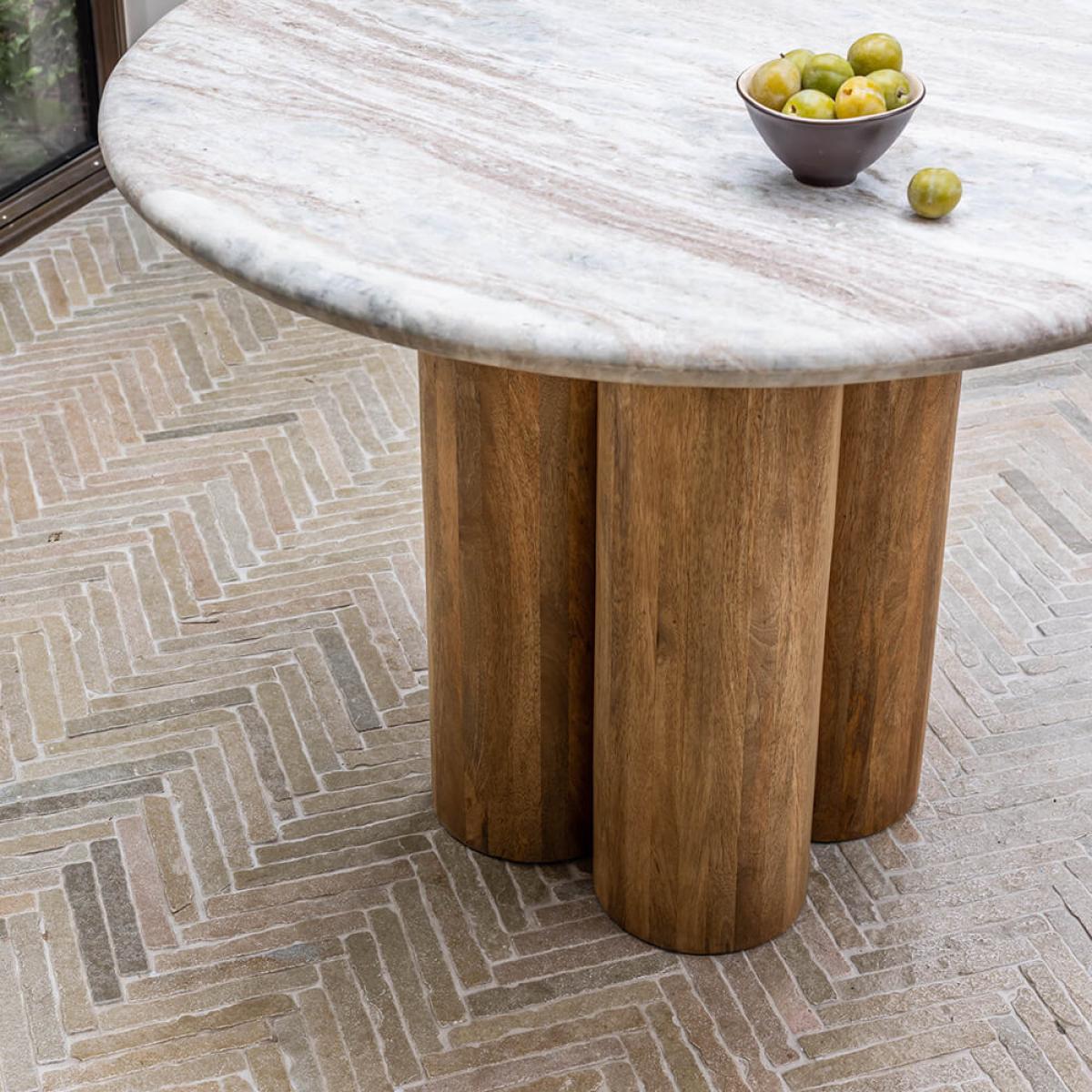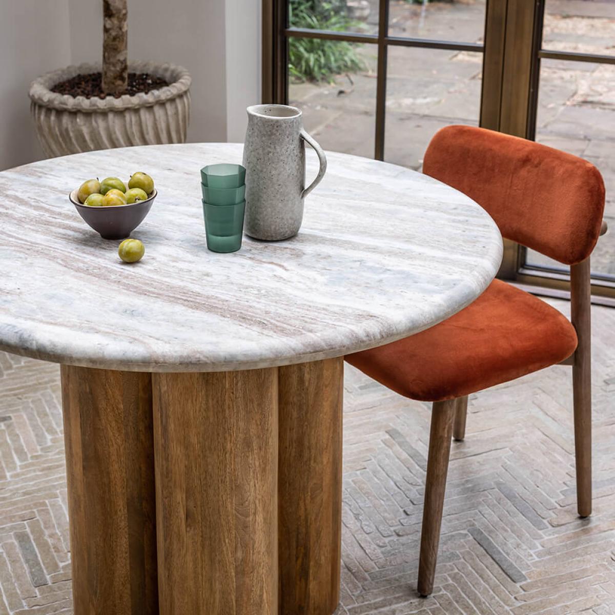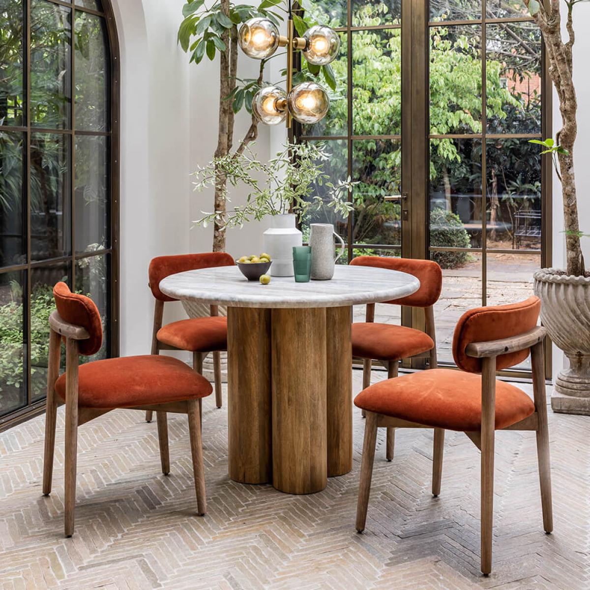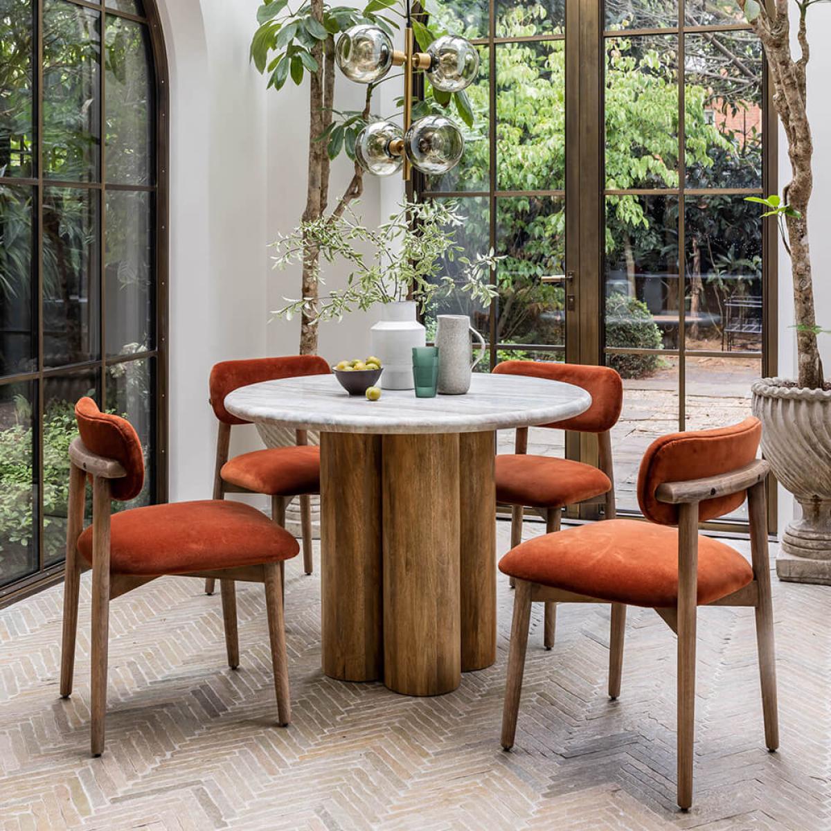 The crowning glory in any space – whether modern or traditional – Column lays to rest the commonly-asked question: marble VS wooden dining table? With both a generous marble top and wooden pedestal base, the answer is, quite simply, both. Not only does each component add to the glamorous aesthetic of this showstopper – the marble featuring mottled white, pale blue and mocha veining – but they’re designed for functionality, too: the surface is hardwearing and expansive; while the pedestal enables plenty of legroom. Able to accommodate between four to six of your nearest and dearest, now all that’s left to decide is who’s going to make the cut?