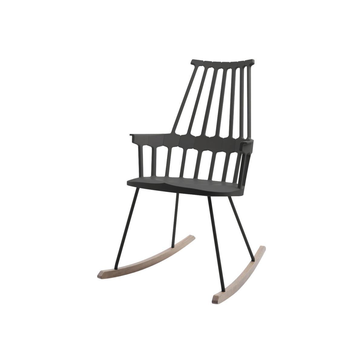 Kartell once again has fun in revisiting a great classic and giving a new look to the Windsor chair. A return to the glorious past of England in the XVIII th century for a «Comb Back» version with a glossy structure featuring a backrest consisting of seven «teeth» which spread out towards the lumbar region where they meet a reinforced hexagonal rim with slim shafts radiating down to join the seat. A goodly size, this single mould chair embodies functionality and ergonomics well-freighted with sentiment and memories. The use of plastic and the bright colours available give a touch of lightness and the contemporary to the Comback chair.