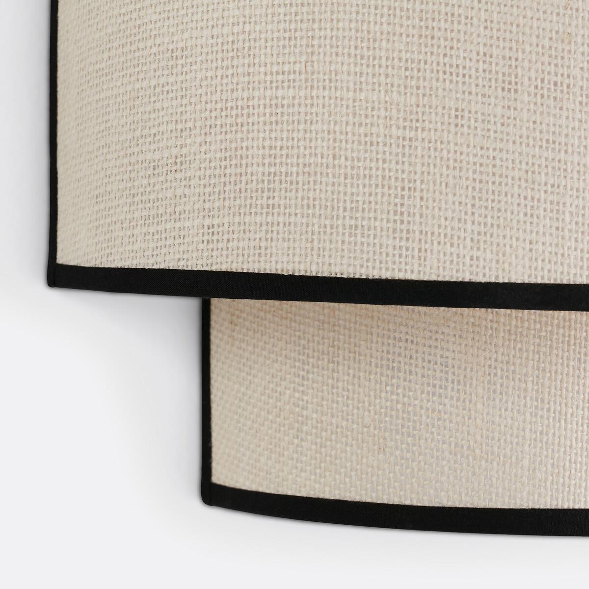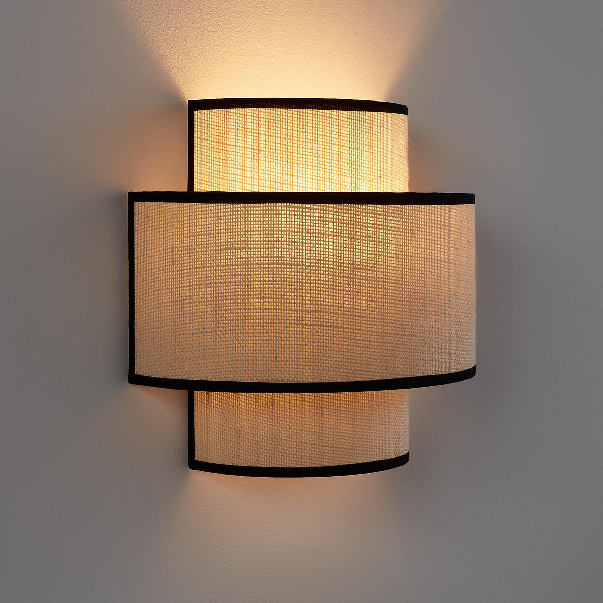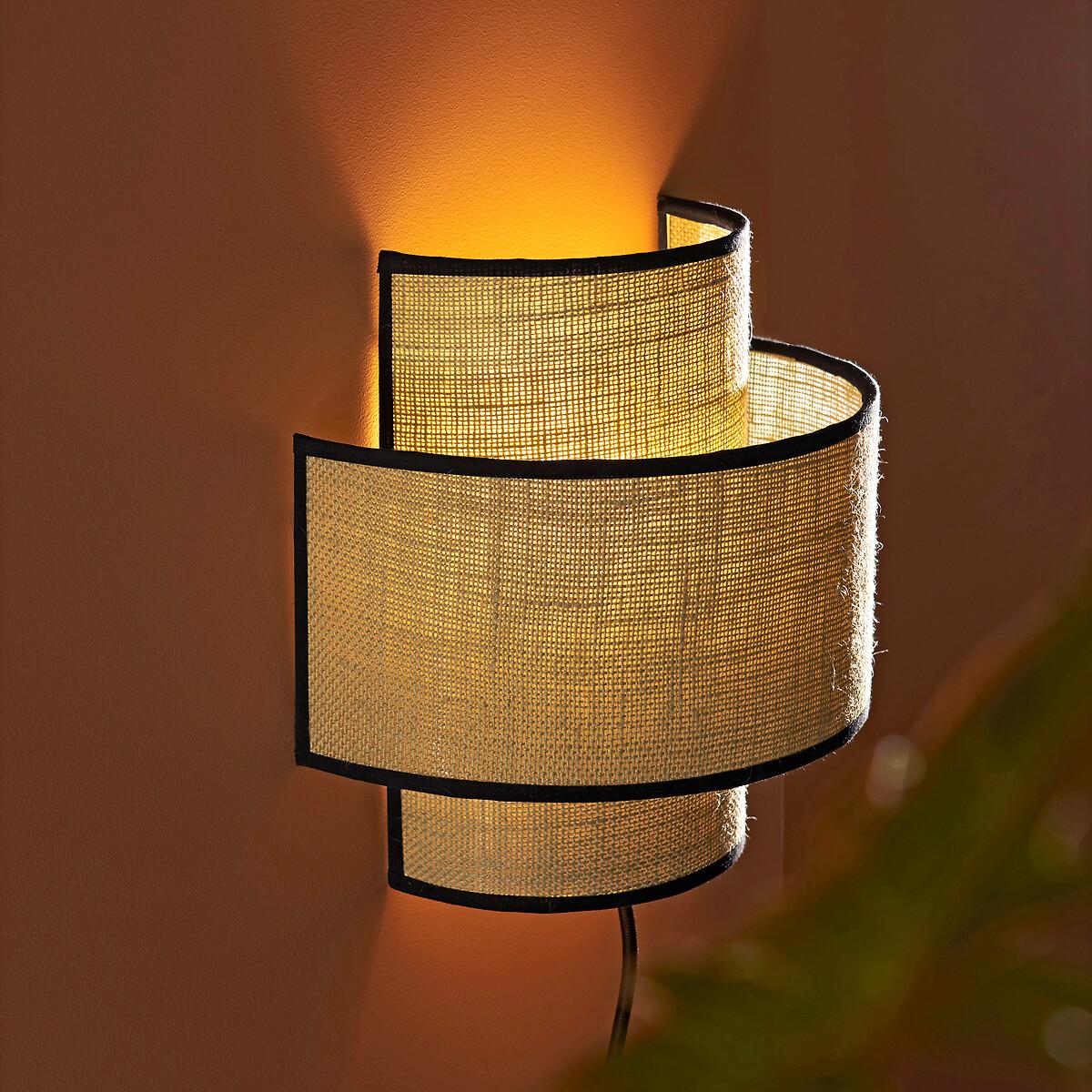 Elegance and subtlety. Made of jute and trimmed with a pretty contrasting black cotton, this elegant wall lamp will bring a soft and warm glow to your interior. Product Details • Jute lampshade, with a cotton braid • Galvanised steel structure covered with epoxy paint • E14 light socket • This product is sold non-electrified. Baulind electrical cable is sold online. Dimensions • Length: 25cm • Height: 24cm • Depth: 8/12cm • Made in France. Parcel Dimensions • L26 x H16 x D26cm • 0.3kg