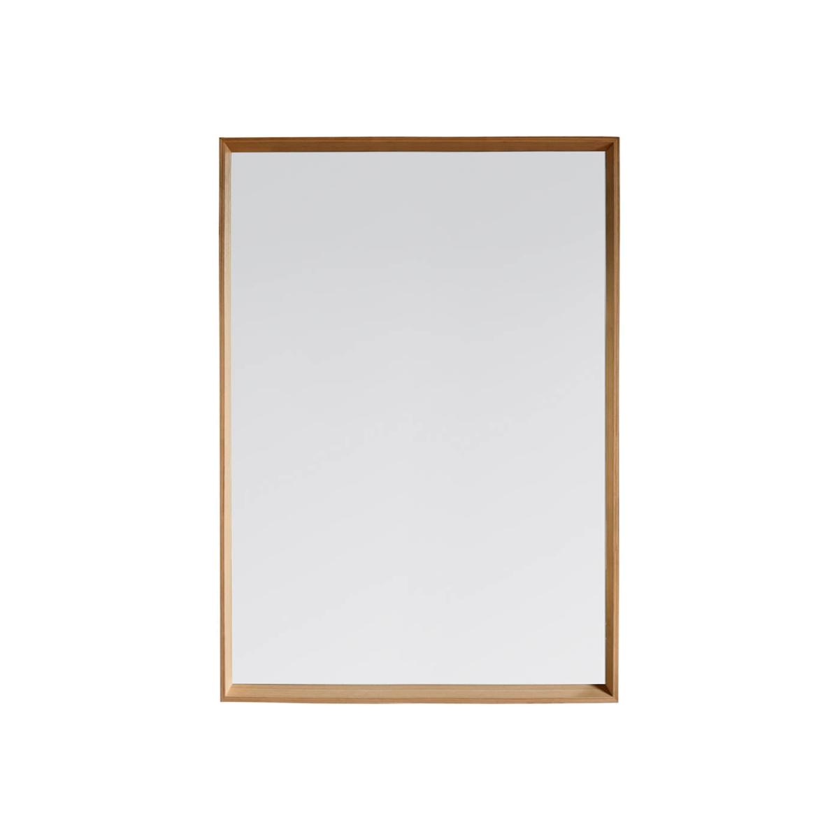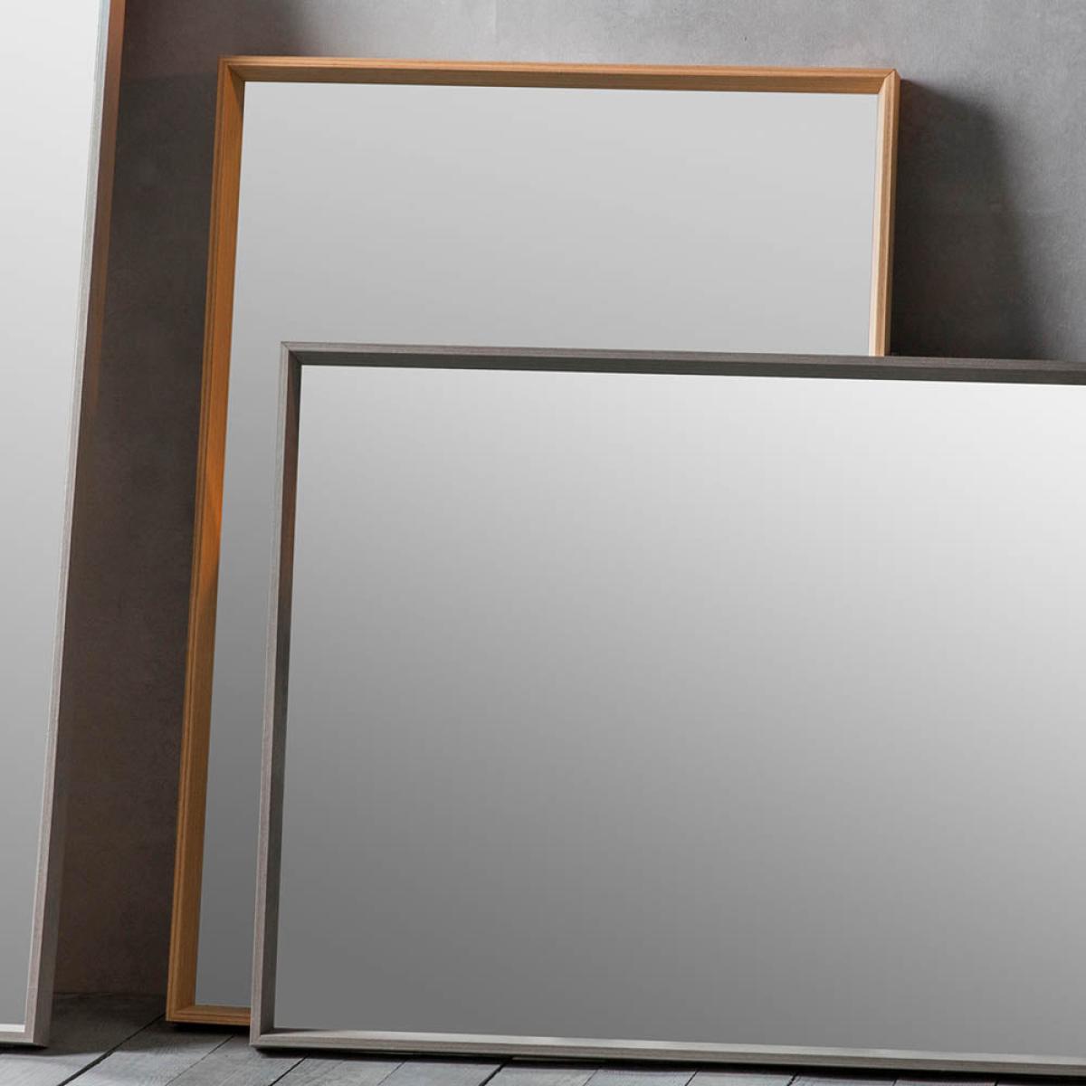 A modern collection of solid wood framed mirrors with subtle tones of oak veneer.