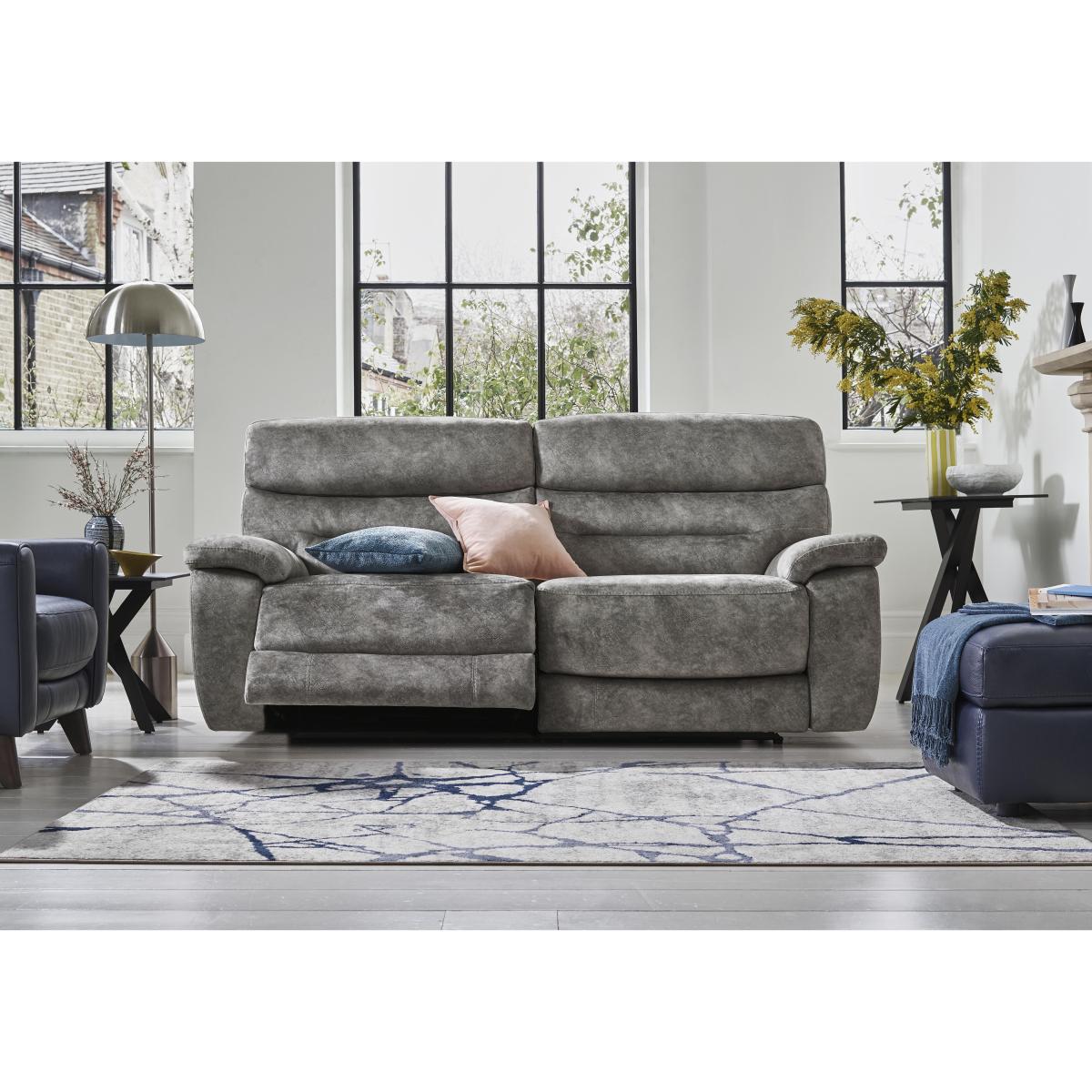 I love this two-seater because it offers a relaxed, contemporary look with its neutral pewter fabric, making it versatile for various interior styles. The addition of the power recliner feature adds a real touch of practicality and comfort, ideal for cosy evenings or unwinding after a long day. It works particularly well in modern or minimalist interiors, where clean lines and subtle colours create a calm atmosphere. To style around it, consider pairing with textured throws or cushions in muted tones or soft patterns to soften the look. Placing it alongside a sleek coffee table and incorporating warm accent lighting can elevate the space while keeping it functional and inviting.
