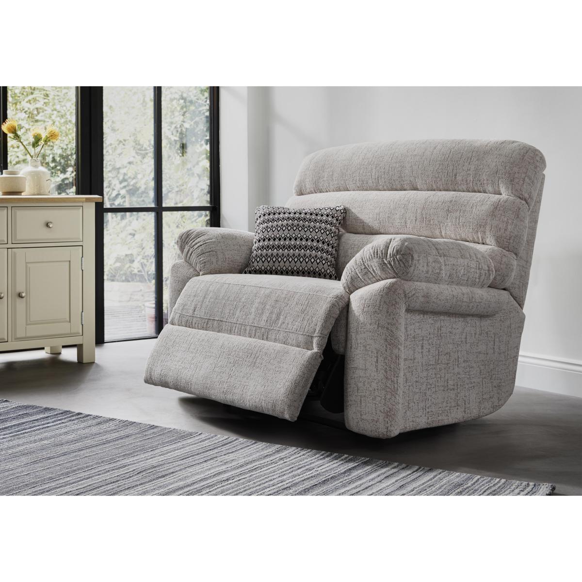 Page is one of three different styles within the Comfort Story Collection, sumptuously comfortable sofas at a very attractive price. The Page sofas and chairs have simple, elegant lines and are deeply cushioned with integral headrests and arm cushions. The soft to the touch chenille upholstery comes in a wide choice of colours. There are also scatter cushions in vibrant contemporary patterns in a choice of colourways, available to buy separately. Put your feet up, if you like to recline with optional manual or power recliners. Exclusive to Furniture Village. Choose the power of love with the Page Love seat with power recliner and power headrest. It has a simple contemporary style, with clean lines and wraparound arm cushions. And this cuddle chair or love seat helps you relax your way with its independently adjustable headrest and touch sensitive power recliner. Two can cuddle up and one can stretch out luxuriously. Feel the quality of the soft to the touch chenille upholstery in a choice of colours. There are even vibrant accent scatter cushions in a choice of colours, available to buy separately. Feel the comfort of the luxury blown fibre back cushion and sprung high-density foam and fibre seat cushion. The Page Love Seat with power recliner and power headrest is part of the great value Comfort Story collection. Exclusive to Furniture Village.