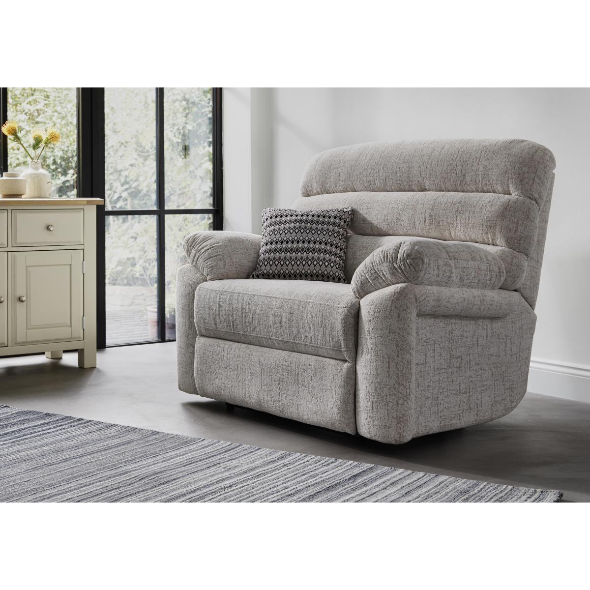 Page is one of three different styles within the Comfort Story Collection, sumptuously comfortable sofas at a very attractive price. The Page sofas and chairs have simple, elegant lines and are deeply cushioned with integral headrests and arm cushions. The soft to the touch chenille upholstery comes in a wide choice of colours. There are also scatter cushions in vibrant contemporary patterns in a choice of colourways, available to buy separately. Put your feet up, if you like to recline with optional manual or power recliners. Exclusive to Furniture Village. The Page Love seat is waiting to pamper you with its deep cushioning and luxurious recliner options. It looks good too, softly curved with simple contemporary lines and wraparound arm cushions. This roomy cuddle chair or love seat has soft and tactile chenille upholstery in a choice of colours. You can even add to the luxury with accent scatter cushions, available to buy separately. The comfort is wonderful, with the padded headrest, luxury blown fibre back cushion and sprung high-density foam and fibre seat cushion. And the deep chaise seat is made for reclining, which you can with the touch sensitive, button or manual power recliners. The Page Love Seat is part of the great value Comfort Story collection. Exclusive to Furniture Village.