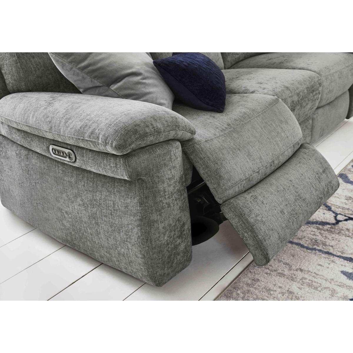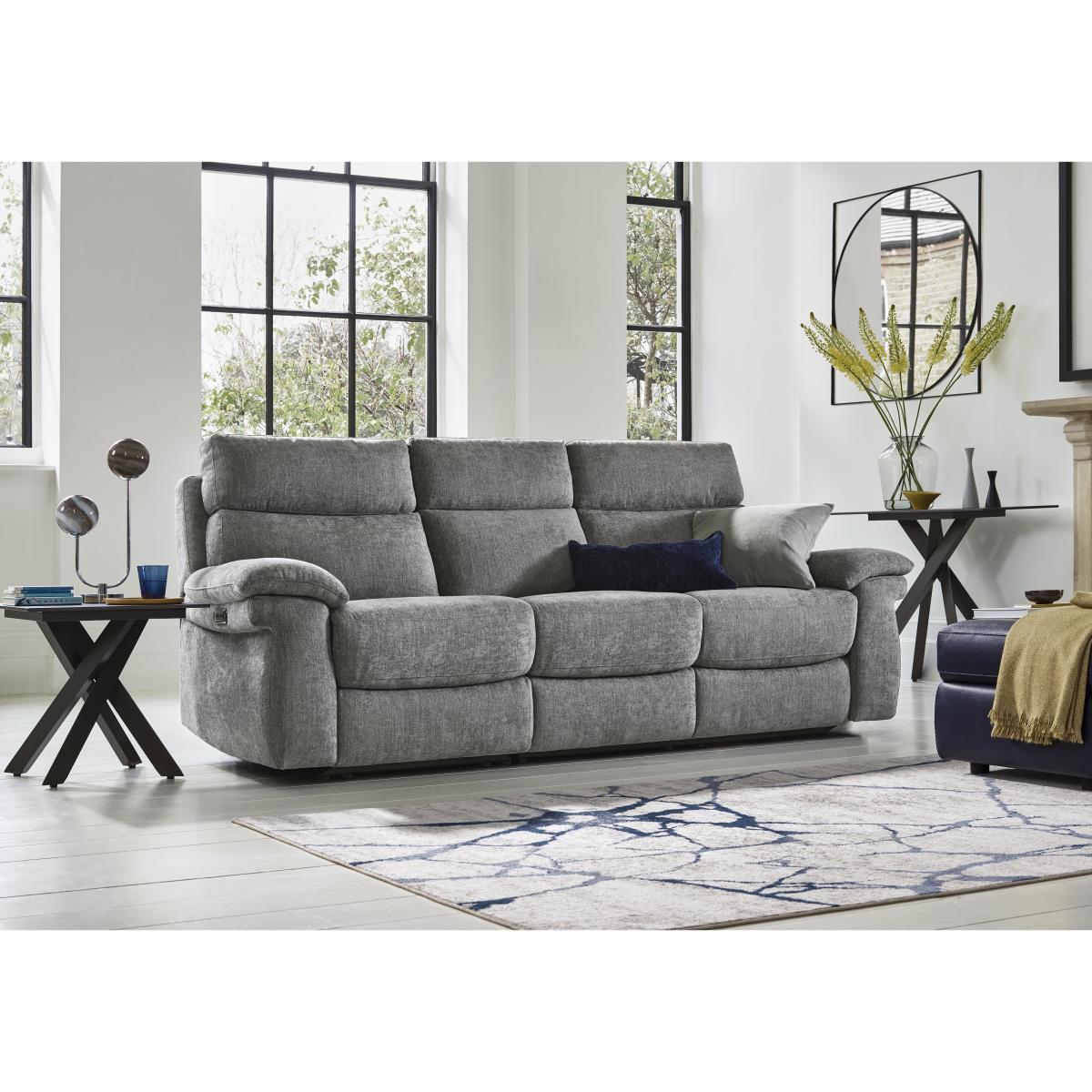 Carefully designed to offer the ultimate in relaxation, the sofas and armchairs in the Comfort Story range are packed with high-end comfort features including power recliners, power headrests and power lumbar support as well as sprung seats and luxurious cushioning. They also look as good as they feel. Choose from three stylish designs – fashionable mid-century Zen, curvaceous contemporary Nimbus, and high-back modern Serene – upholstered in your choice of 100% leather or high-quality fabric. Something else that’s pretty comfortable? The great-value prices. Comfort Story is handmade exclusively for Furniture Village. If you like to get really comfortable, you’ll love how this great-value three-seater sofa makes you feel. Complete with power headrests and power lumbar support, it has you covered. Why you'll love it Power recliners, power headrests, power lumbar – this 3-seater fabric sofa has them all. Exceptional comfort at an exceptional price. High-back support meets beautiful modern style. The ultimate comfort sofa with power recliners, power headrests and power lumbar support. High-quality fabric upholstery. Handmade exclusively for Furniture Village. This 3-seater fabric power recliner sofa with power headrests and power lumbar is part of the Comfort Story Serene range. What you need to know Medium comfort level. Seat suspension: no-sag spring. Seat cushioning: foam, fibre, inner coil. Back support: rubber webbing. Back cushioning: loose fibre. To maintain cushion fullness, be sure to plump head, lumbar and arm areas daily. Back is removable. Please allow time for new recliners to ease. Minor gaps are necessary to ensure ease of recliner motion and may be exaggerated depending on floor type. Some fabrics can show wear on areas of more use or in direct sunlight. Clean regularly using a soft brush or vacuum with the curtain attachment. Deal with any spills promptly. Professional cleaning advised for oil- and grease-based stains. Please read our upholstery care guide for more advice. Item code: WEBGSENE3PHLFAB-006-1