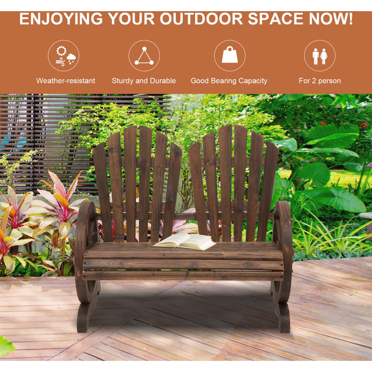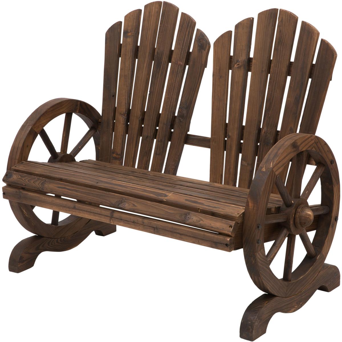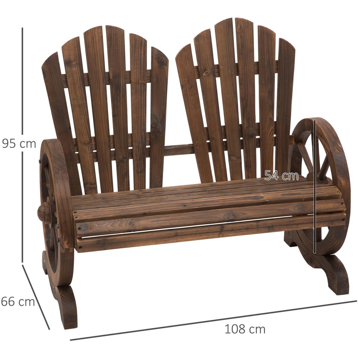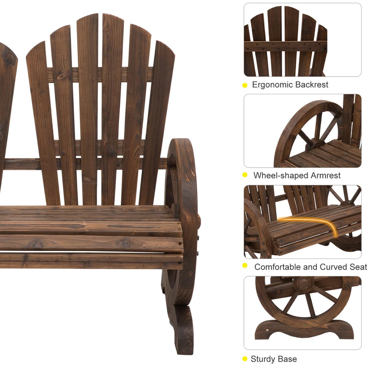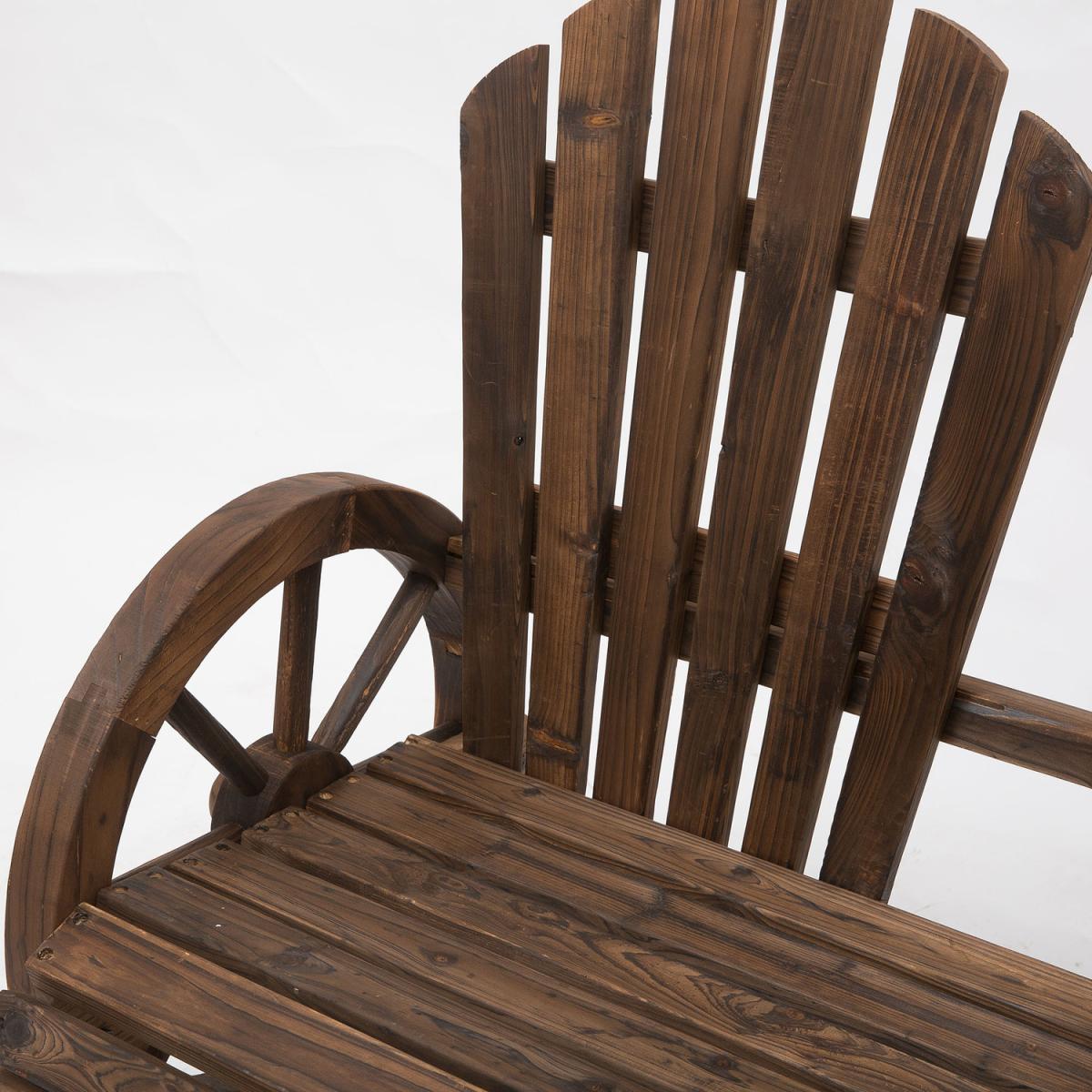 Constructed from natural fir logs, this wooden love chair has well-designed wheel-shaped armrests, which is quite unique and elegant. It can be places in any relaxation area, like garden, yard, patio, pool side, etc. The wide seats and sturdy design can provide rest for at least two people. The comfortable seat back is perfect for relaxing, rest, release, sleep and entertainment.