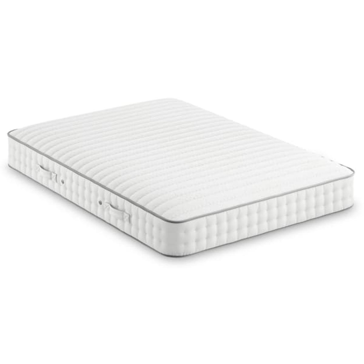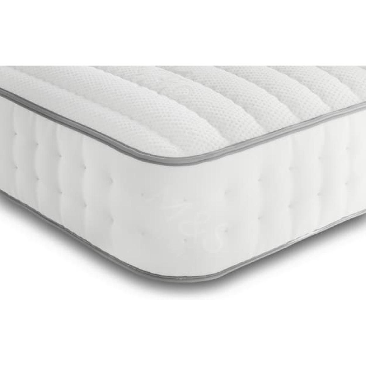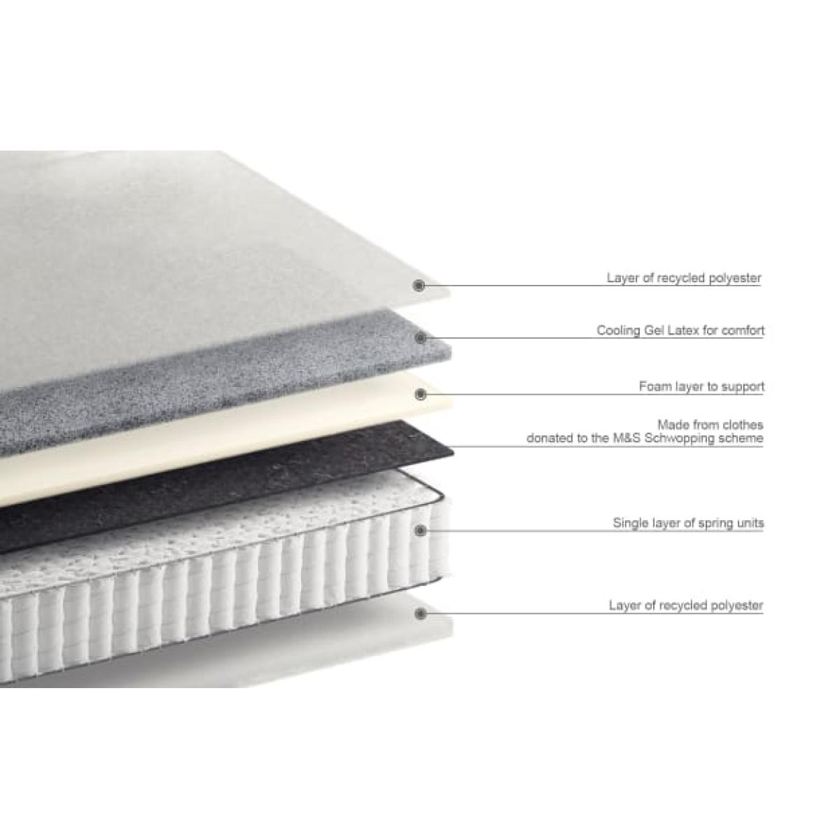 Drift off into a peaceful slumber on this medium-tension mattress. The core is made from hundreds of springs – each enclosed in a woven pocket – which move independently. This design reduces motion transfer, meaning you won't be disturbed by your partner's movements. An antibacterial gel layer on top, made from breathable latex infused with gel pods, gives a gentle bounce that reacts to your body's contours for cushioned support. The gel features Comfortably Cool temperature-regulating technology, which has moisture-wicking properties and helps disperse excess heat to keep you cool as you snooze. Edge-to-edge support means you can use the whole length and width of the mattress, while two rows of side stitching add durability. Four vents help to increase airflow for a breathable feel, while the four handles mean you can easily rotate it. This anti-allergy mattress has been made in the UK and comes with a 10-year guarantee for peace of mind.