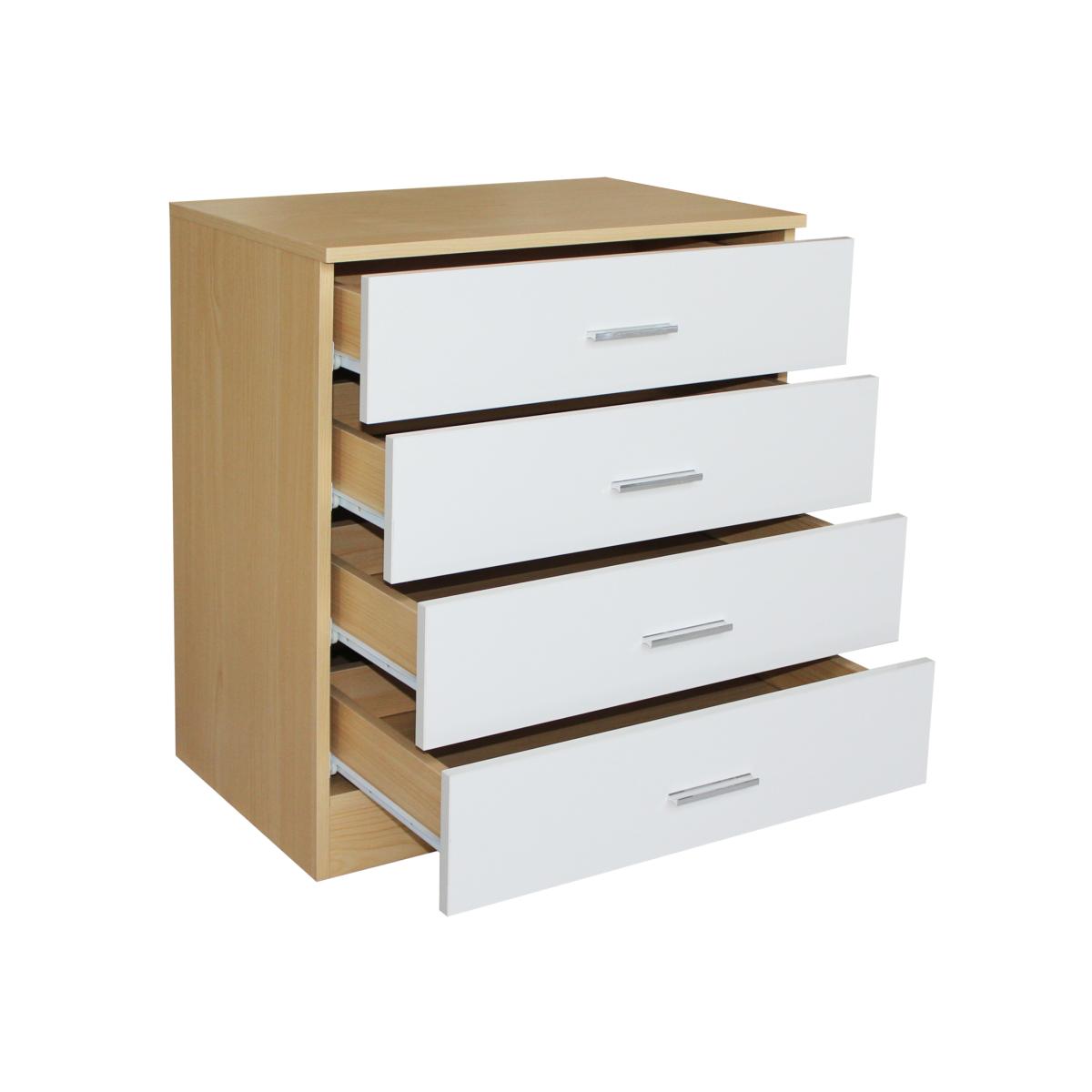 Transform your bedroom storage with this sleek and modern four-drawer chest. The high gloss finish creates a stunning contemporary aesthetic that instantly elevates any room's decor. Each of the four spacious drawers features elegant chrome-effect handles, providing both style and functionality. The clean lines and minimalist design make this chest versatile enough to complement various interior styles. Perfect for storing clothes, linens, or personal items, this chest offers ample storage while maintaining a sophisticated appearance. The durable construction ensures long-lasting use, while the smooth drawer operation allows for easy access to your belongings. Whether placed in a master bedroom, guest room, or dressing area, this chest of drawers serves as both a practical storage solution and a stylish furniture piece. The high-gloss surface not only looks premium but is also easy to clean and maintain. This chest arrives with everything needed for assembly, allowing you to quickly set up and organise your space. Available in black, white, oak and white, and cream or walnut and black. Please note that all dimensions are approximate; please allow room for slight variations.