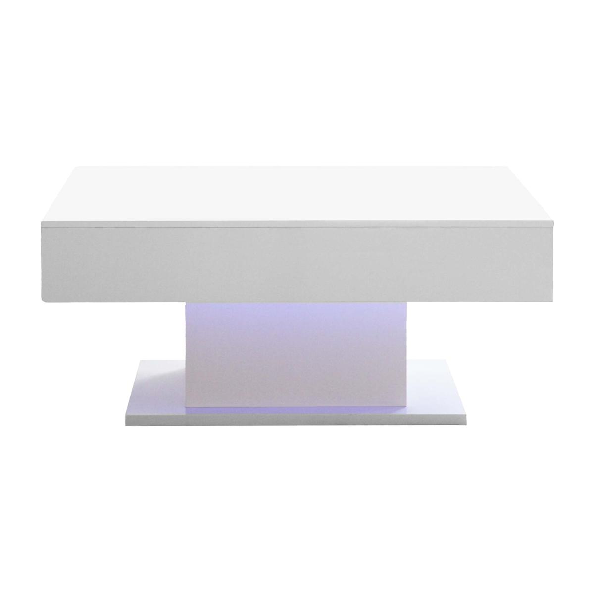 Transform your living space with this stunning modern coffee table featuring a brilliant white high gloss finish that adds sophistication to any room. The contemporary pedestal base design creates a striking floating effect, while the sleek rectangular top provides ample surface area for displaying decorative items, books, or serving refreshments. The LED lighting with 16 different colour options adds a dramatic ambient glow, perfect for evening entertaining or creating a cosy atmosphere. This minimalist piece combines form and function, with its durable construction and eye-catching aesthetics making it an ideal centrepiece for modern and contemporary interiors. The clean lines and lustrous finish reflect light beautifully, helping to brighten your space while complementing existing decor. Whether styled in a modern flat or contemporary home, this illuminated coffee table makes a bold statement while maintaining practical functionality.