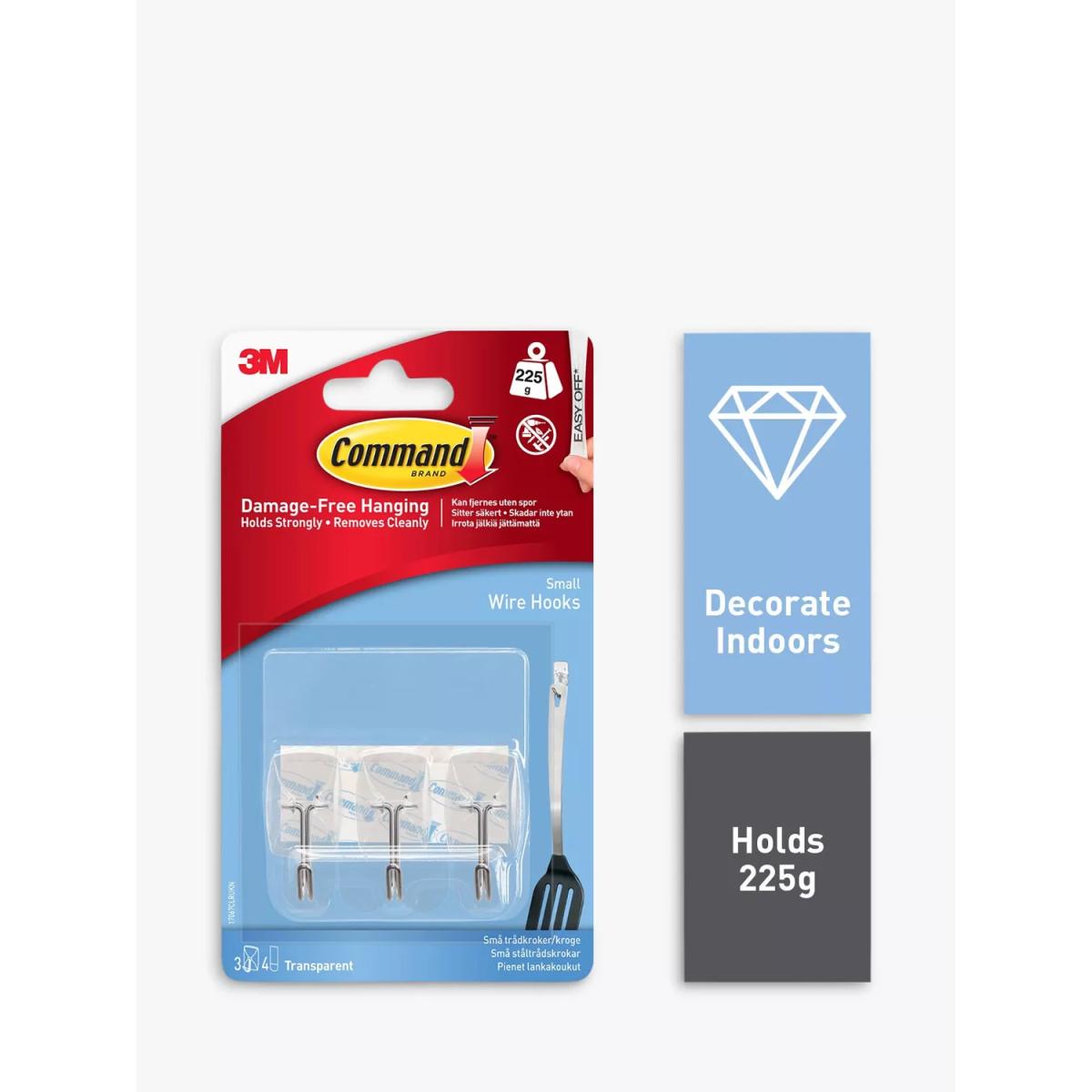Command™ Small Clear Wire Hooks with Clear Strips are an innovative solution for hanging decorations, calendars and other lightweight objects securely and damage-free. They hold strongly and remove cleanly using 3. M stretch-release technology.
