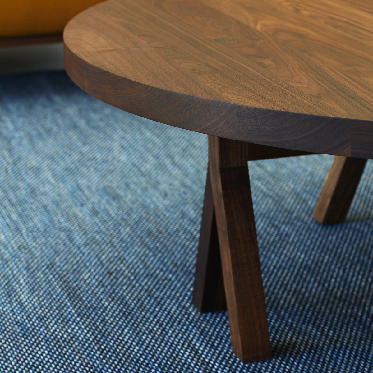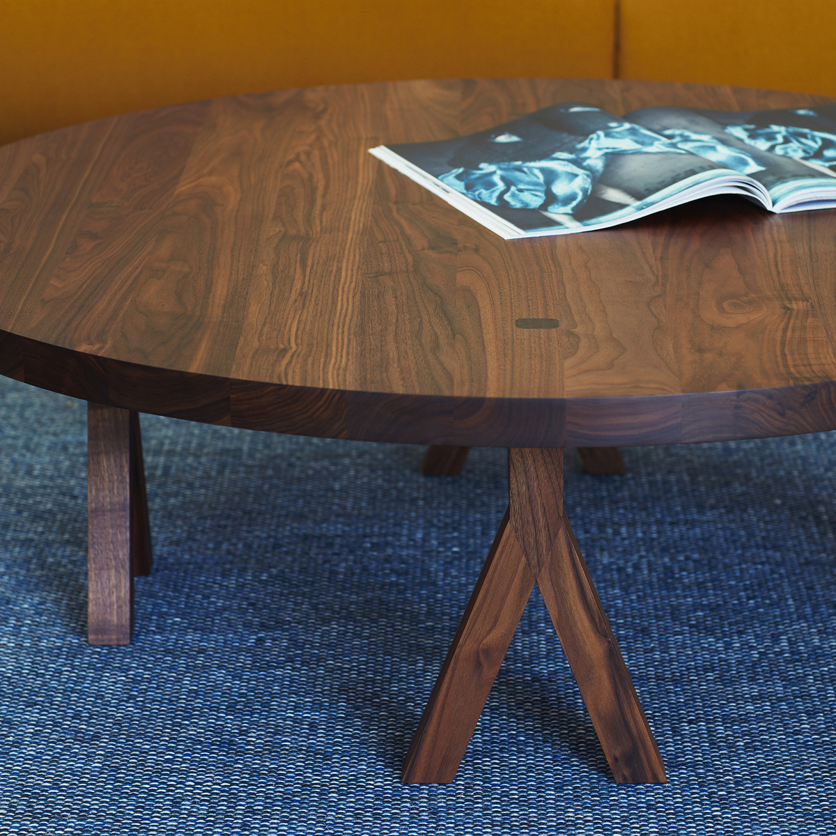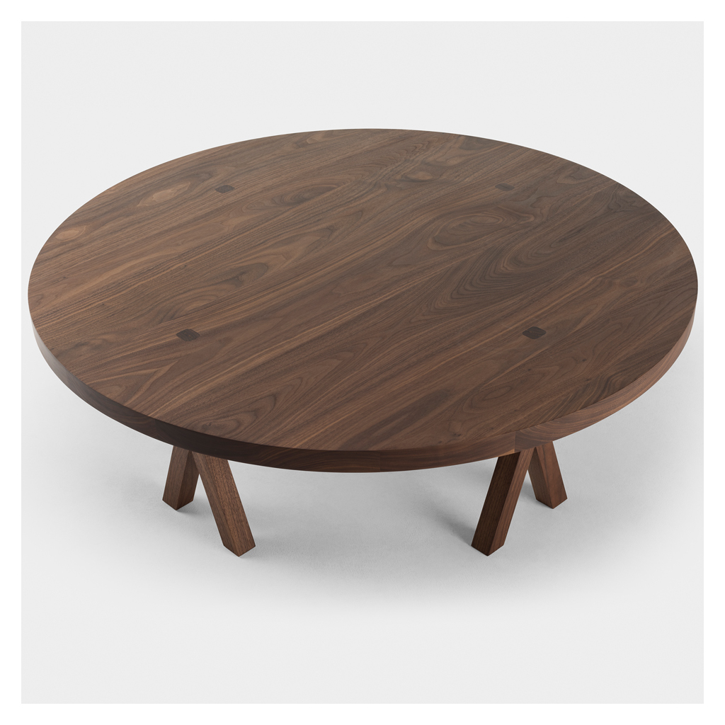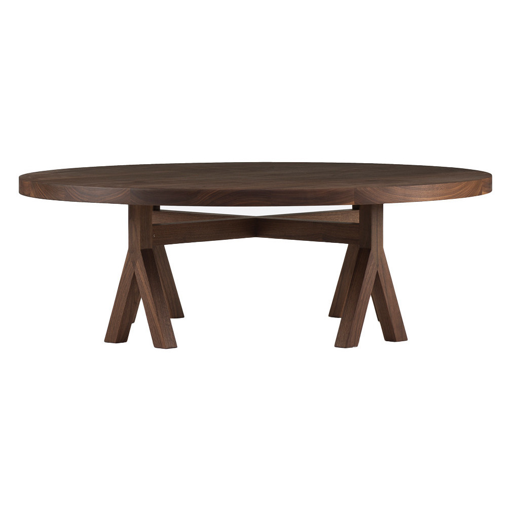 Originally designed for the Das Haus exhibition at the 2015 Cologne Fair, the Commune Coffee Table reflects on design duo neri & hu's idea of a future society, crafted from walnut with statement legs and manufactured in Portugal by De La Espada. Working from a stimulus of community and collective, neri & hu created this contemporary dining table to showcase its many legs working together to support its surface. Crafted from American black walnut wood finished with Danish oil, the Commune Coffee Table presents a natural grain that accents its fluid, round surface.
