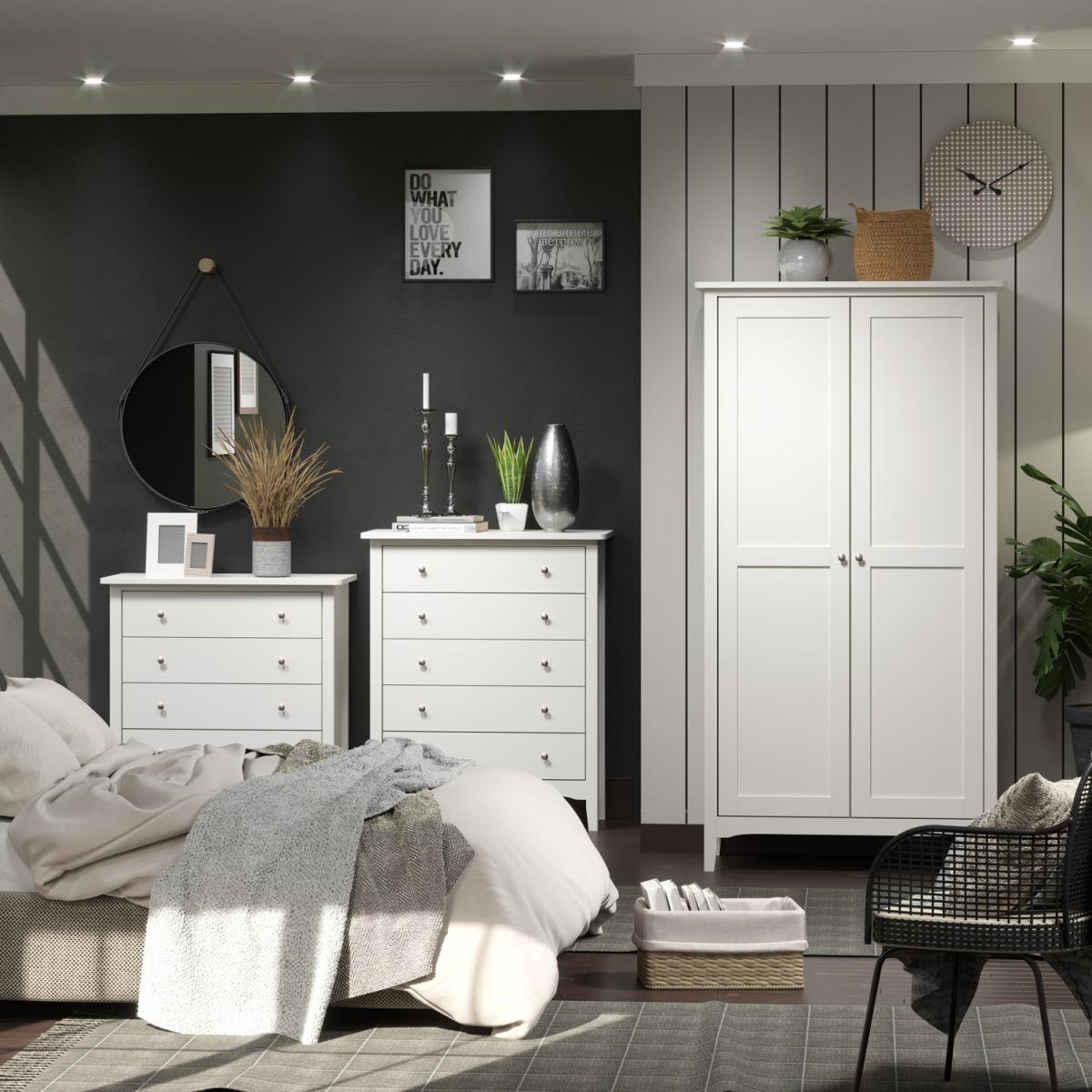 Classic shaker styling with softly rounded corners makes Como furniture ideal for your bedroom, whichever decorative style you have chosen. This wardrobe optimises floor space whilst providing plenty of hanging storage space for clothes. The inside is finished too, providing a soft clean surface for delicate fabrics. There is a metal hanging rail and easy to adjust hinges, just in case your floor is a little uneven. The classic shaker leg design is practical too, elevating the piece so it is easy to clean under and around. Polished effect metal handles features on each door. Made from MDF with a luxurious environmentally friendly water-based paint finish. Create a complete coordinated look for your room with other pieces from our Como range.