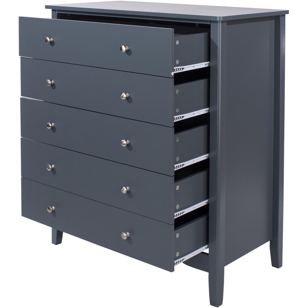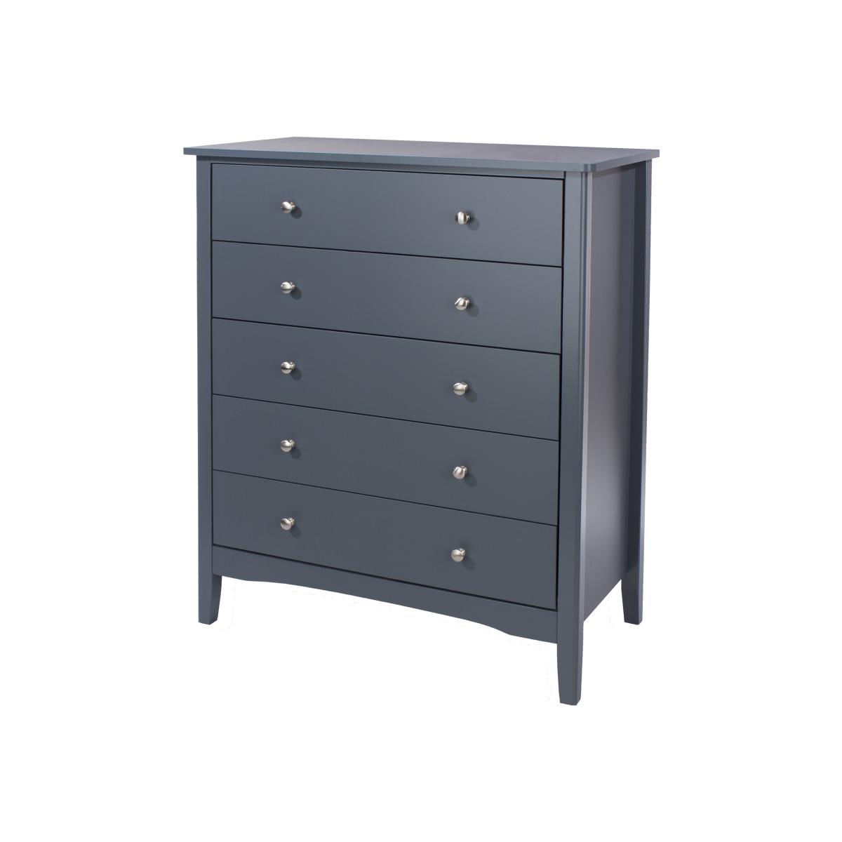 Classic shaker styling with softly rounded corners makes Como furniture ideal for your bedroom, whichever decorative style you have chosen. This 5 drawers tall chest optimises floor space whilst providing much-needed storage for clothes, jumpers and more. The insides of the drawers are fully finished too, providing a soft clean surface to store delicate fabrics. The top surface provides space for your treasured possessions to be displayed. The classic shaker leg design is practical too, elevating the piece so it is easy to clean under and around. Polished effect metal handles features on each drawer and drawers are all fitted with easy glide runners. Made from MDF with a luxurious environmentally friendly water-based paint finish. Create a complete coordinated look for your room with other pieces from our Como range.