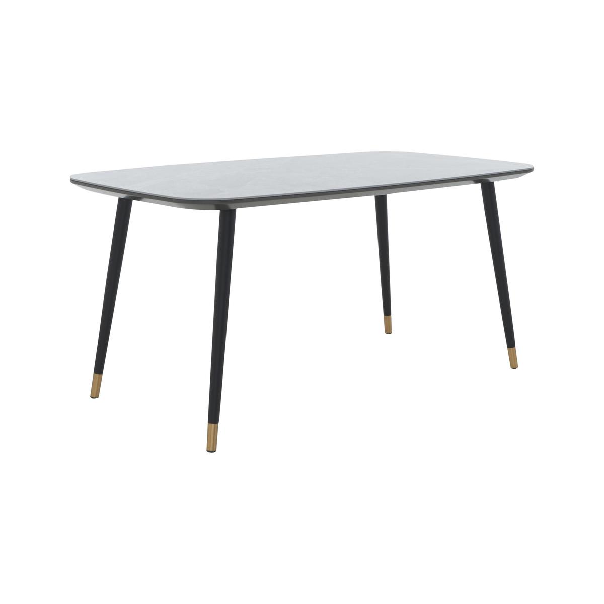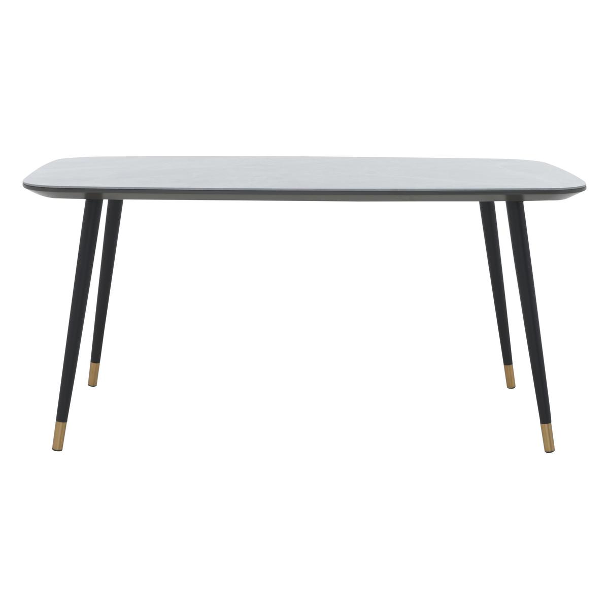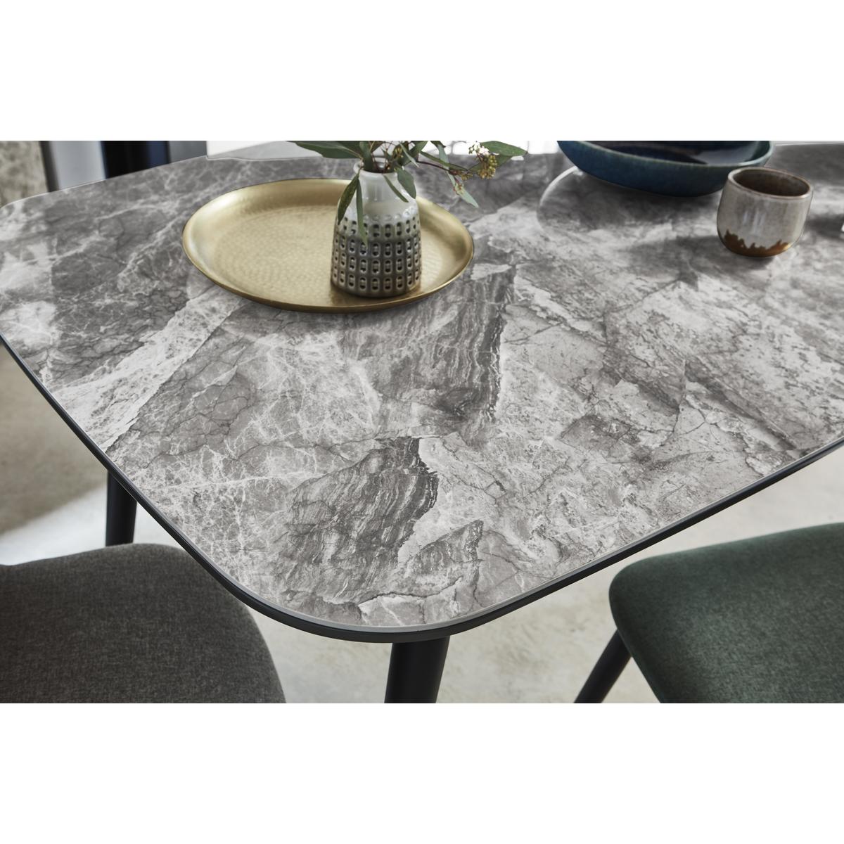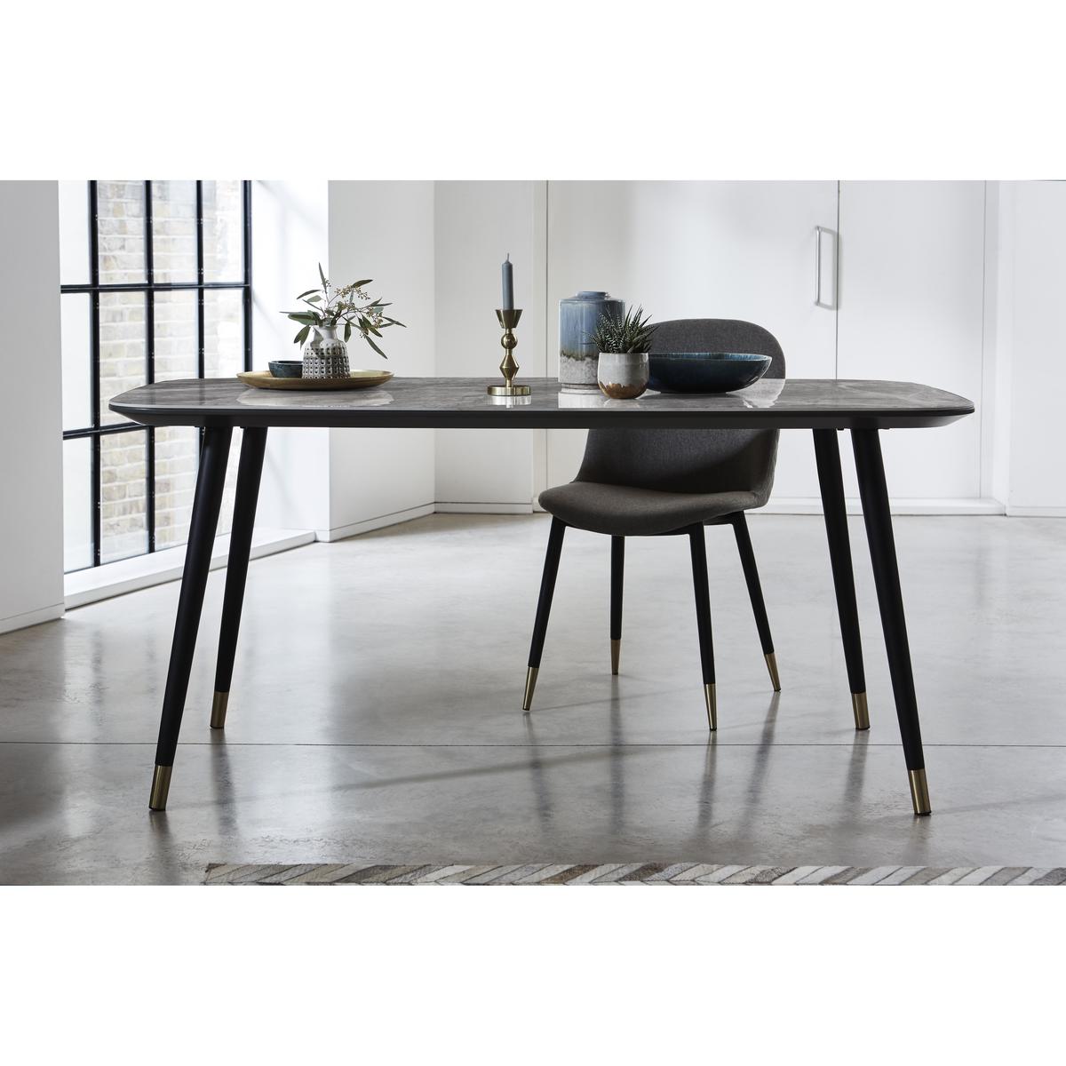 Cool and contemporary design with retro charm. Boat-shaped dining table finished in midnight-grey ceramic. Great value and only at Furniture Village. The Como dining table really is a one of a kind. This compact dining table seats six around its distinctive midnight-grey ceramic top and brings cool Italian-inspired style to your kitchen or dining room. You’ll love the details, too. The top is boat shaped so it’s as accommodating as a rectangular table but just that bit more stylish. The slender metal legs have a black powder coated finish with feet caps in stylish brass-effect brushed stainless steel. This table is a great choice for a modern kitchen diner. It’s neatly proportioned, and the hard wearing ceramic surface makes it the perfect multi-functional piece that will take you from dinner to homework to family breakfast. Exclusive to Furniture Village, the Como dining table is part of the Como range of cool and contemporary ceramic-topped tables and storage furniture. The range includes a coffee table, a sideboard and a lamp table as well as dining chairs and dining sets. Did you know? Ceramic is highly durable, and heat and scratch resistant. Each ceramic top is individually made and will have unique and distinctive characteristics.