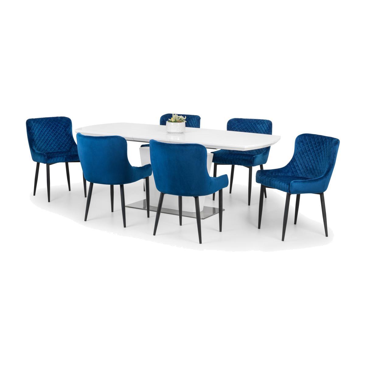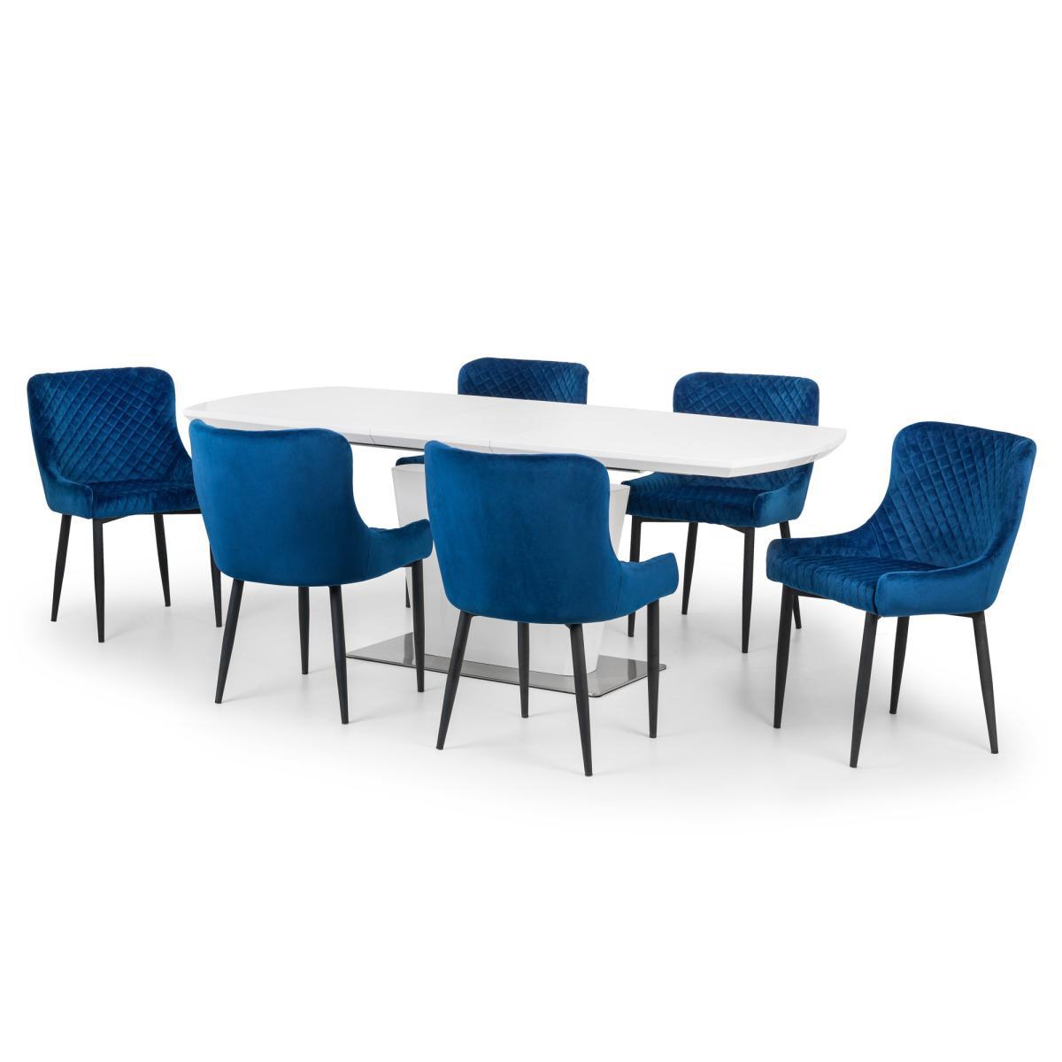 Como Dining Table with 6 Luxe Blue Chairs Blue and White
