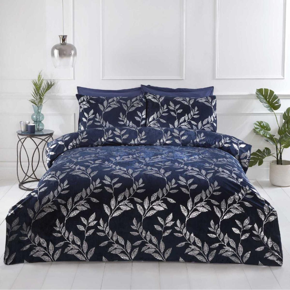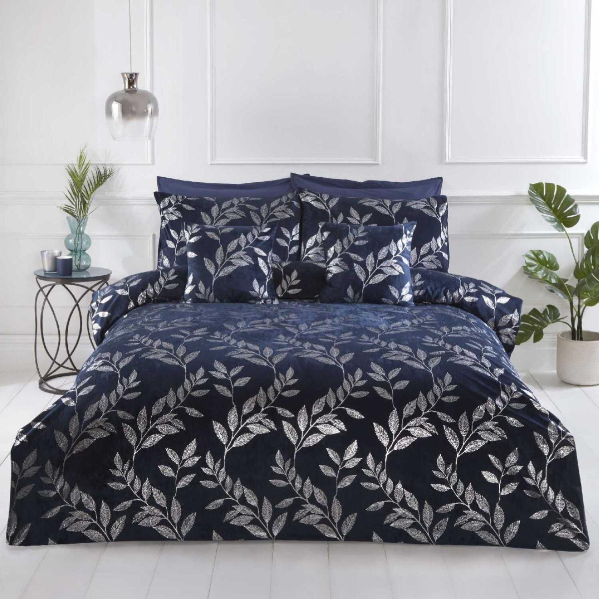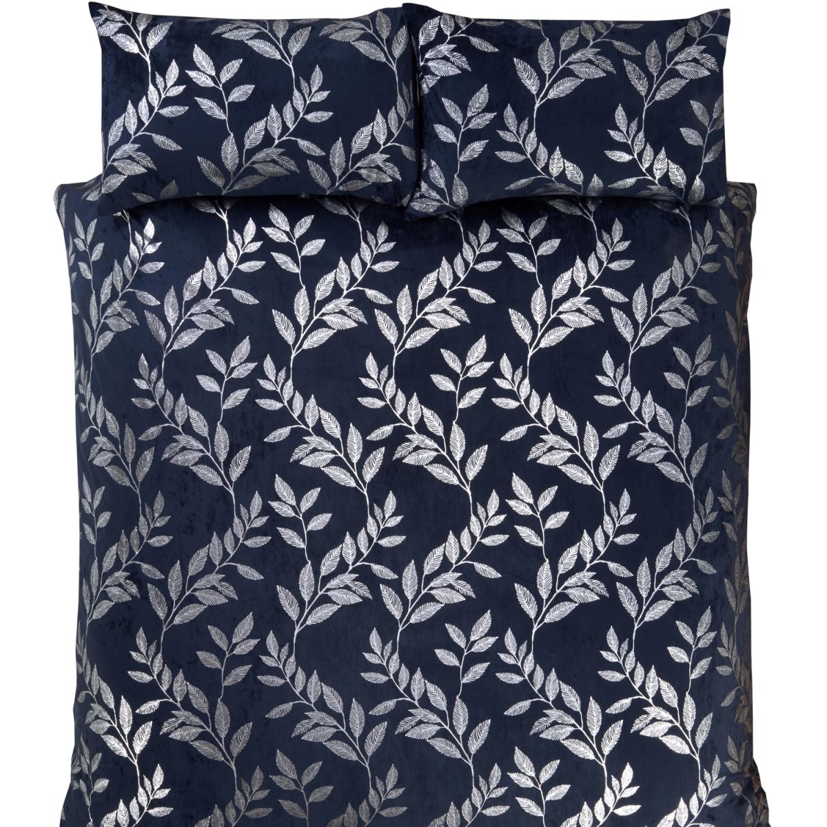 An exquisite collection of finely crafted bedlinen with special detailing, our Como design is the ideal combination of refined elegance and stylish colour. Featuring silver foil printed leaves on a navy-blue base, this bedding is sure to turn your bed into the main feature of any bedroom.