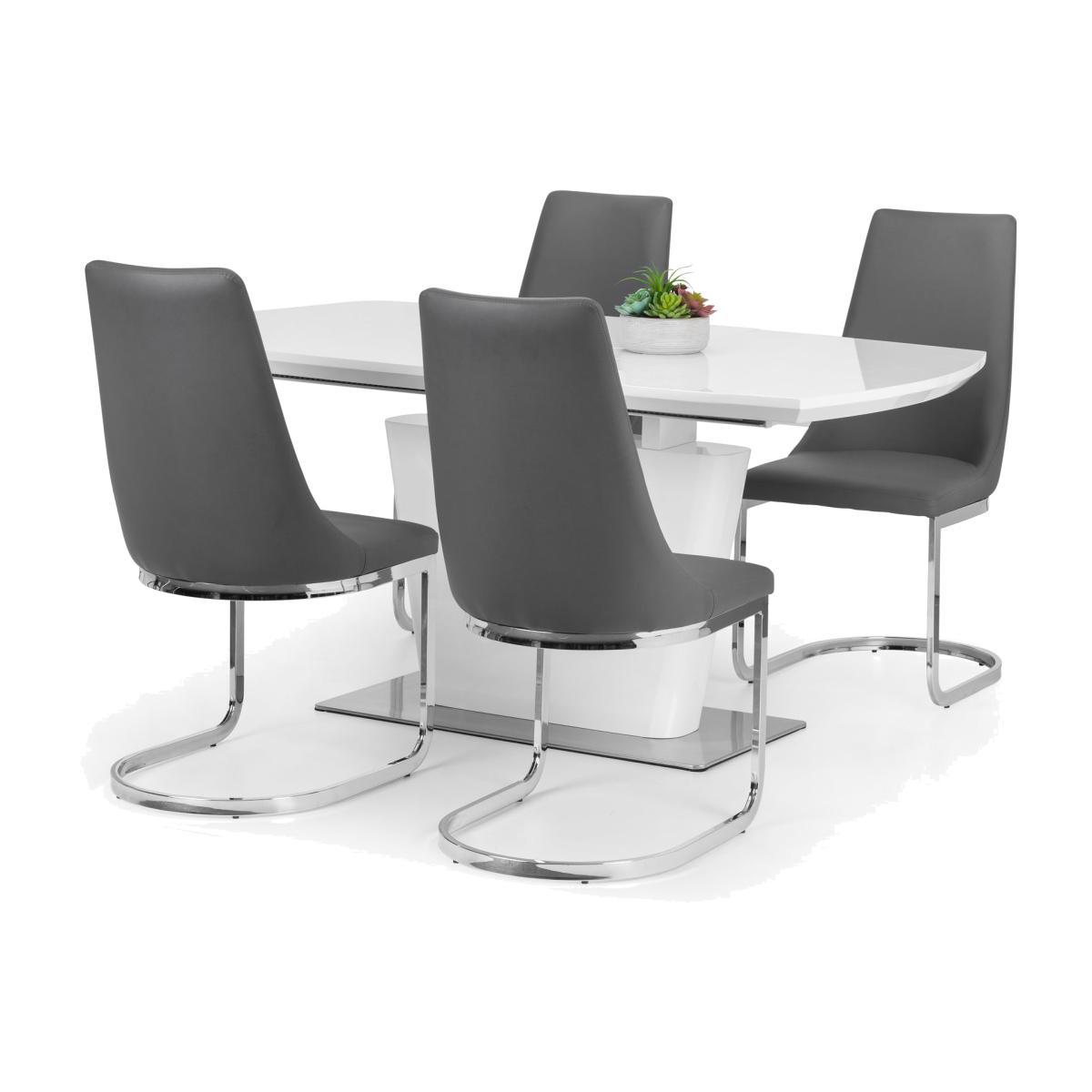 This grey extending dining set is a versatile piece that blends modern functionality with sleek design. I love how the neutral grey tone makes it adaptable to various interior styles, from minimalist and contemporary to more industrial or Scandinavian themes. It works particularly well in open-plan spaces or kitchens where flexibility is key, as the extension feature allows for easy hosting and larger gatherings. For styling, consider pairing it with complementary soft furnishings like textured placemats or colourful accessories to add warmth, or keep it minimal with monochrome accents for a streamlined look. The dark chairs with chrome legs are practical too - easy to wipe clean and resilient, making this set both stylish and functional.