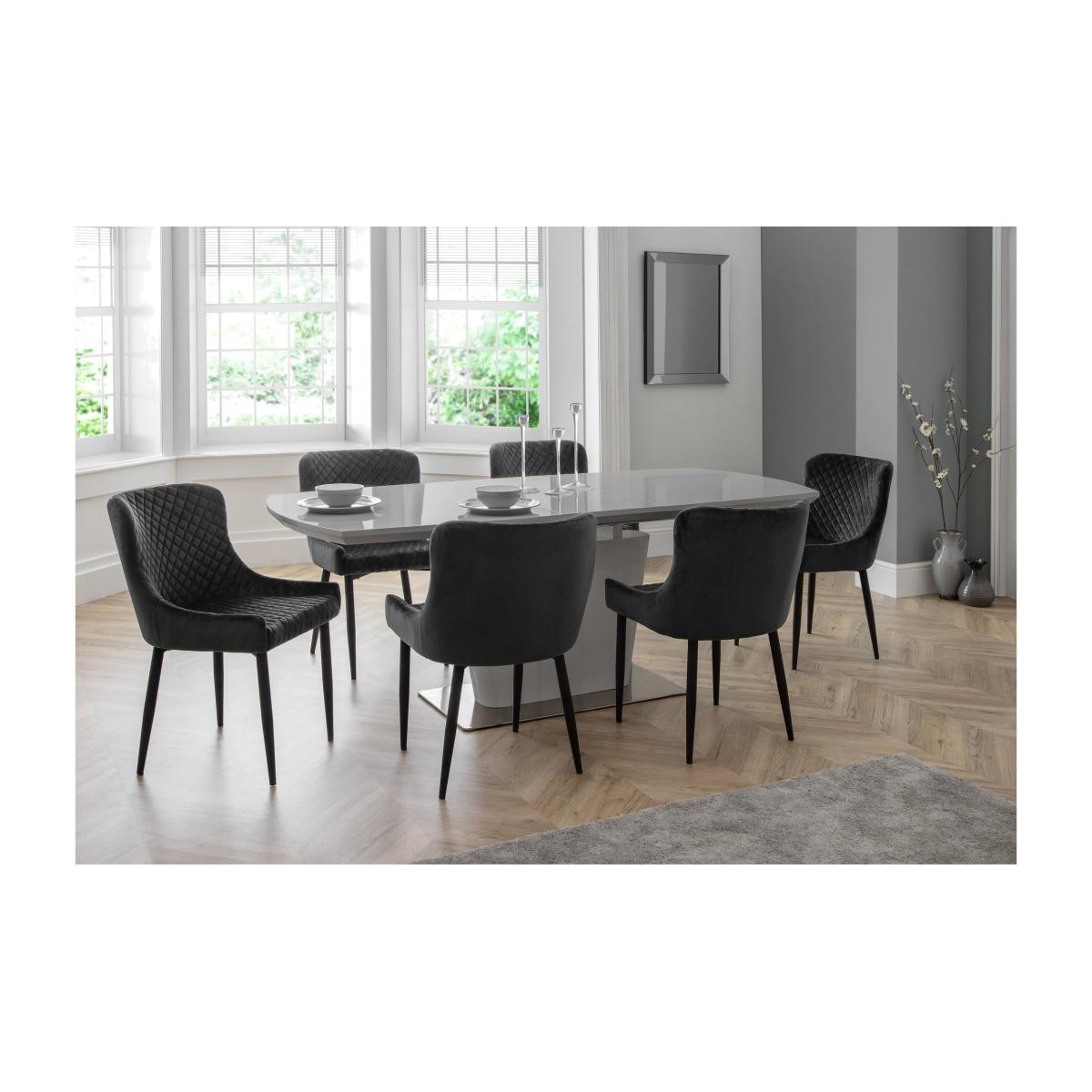 I’m a fan of the Como table for its smooth, high-gloss surface and simple extension mechanism - it feels luxe without being fussy. Its neutral grey tone slots straight into modern, Scandi or transitional schemes and acts as a crisp backdrop for contrasting chairs or a bold rug. Styling tip: anchor the table with a low-pile geometric rug and keep centrepieces minimal - a pair of slim candlesticks or a sculptural bowl. If you’re adding greenery, choose tall, slender vases to emphasise the table’s clean lines, and coordinate cushions or throws on surrounding chairs to bring in a cosy touch.