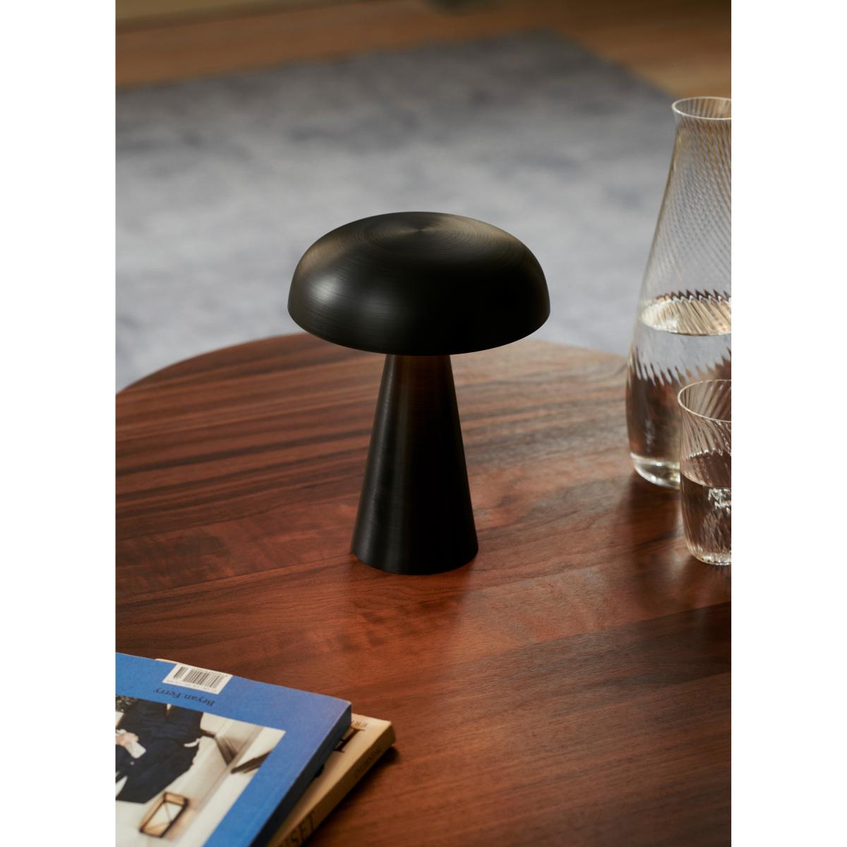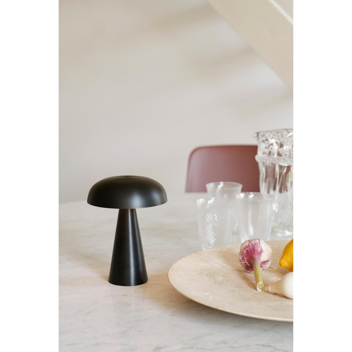 The Como portable table lamp SC53 from &Tradition is a battery-powered lamp that makes it easy for you to take it with you wherever you're going. The table lamp has a robust base that tapers at the top to a mushroom-shaped lampshade. The lamp creates a wonderful atmosphere thanks to its soft, pleasant light, whether you are out on the patio or the sofa. The battery lasts about 11 hours at maximum brightness when it's fully charged. You can use a second battery to make the battery last longer.