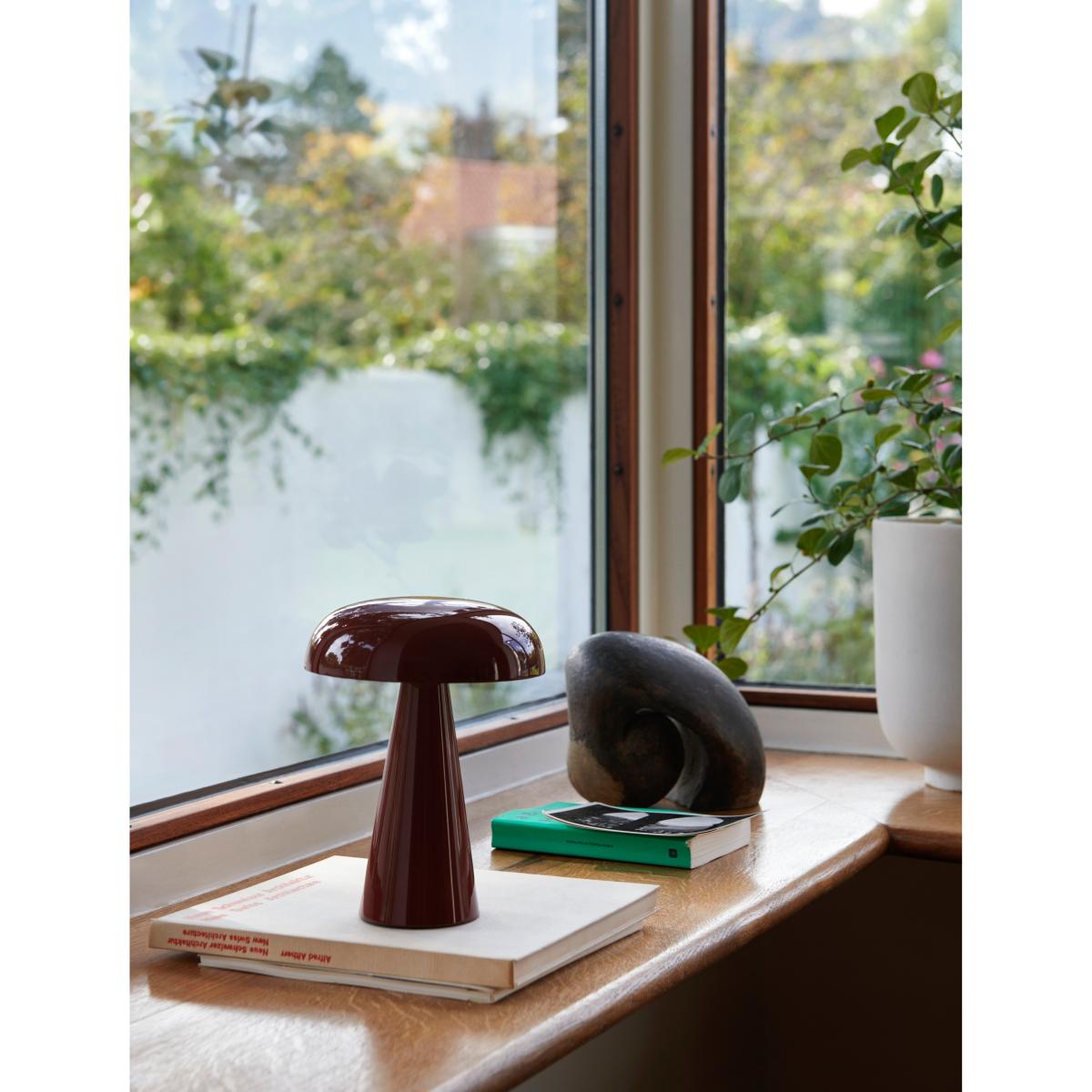 The Como portable table lamp SC53 from &Tradition is a battery-powered lamp that makes it easy for you to take it with you wherever you're going. The table lamp has a robust base that tapers at the top to a mushroom-shaped lampshade. The lamp creates a wonderful atmosphere thanks to its soft, pleasant light, whether you are out on the patio or the sofa. The battery lasts about 11 hours at maximum brightness when it's fully charged. You can use a second battery to make the battery last longer.