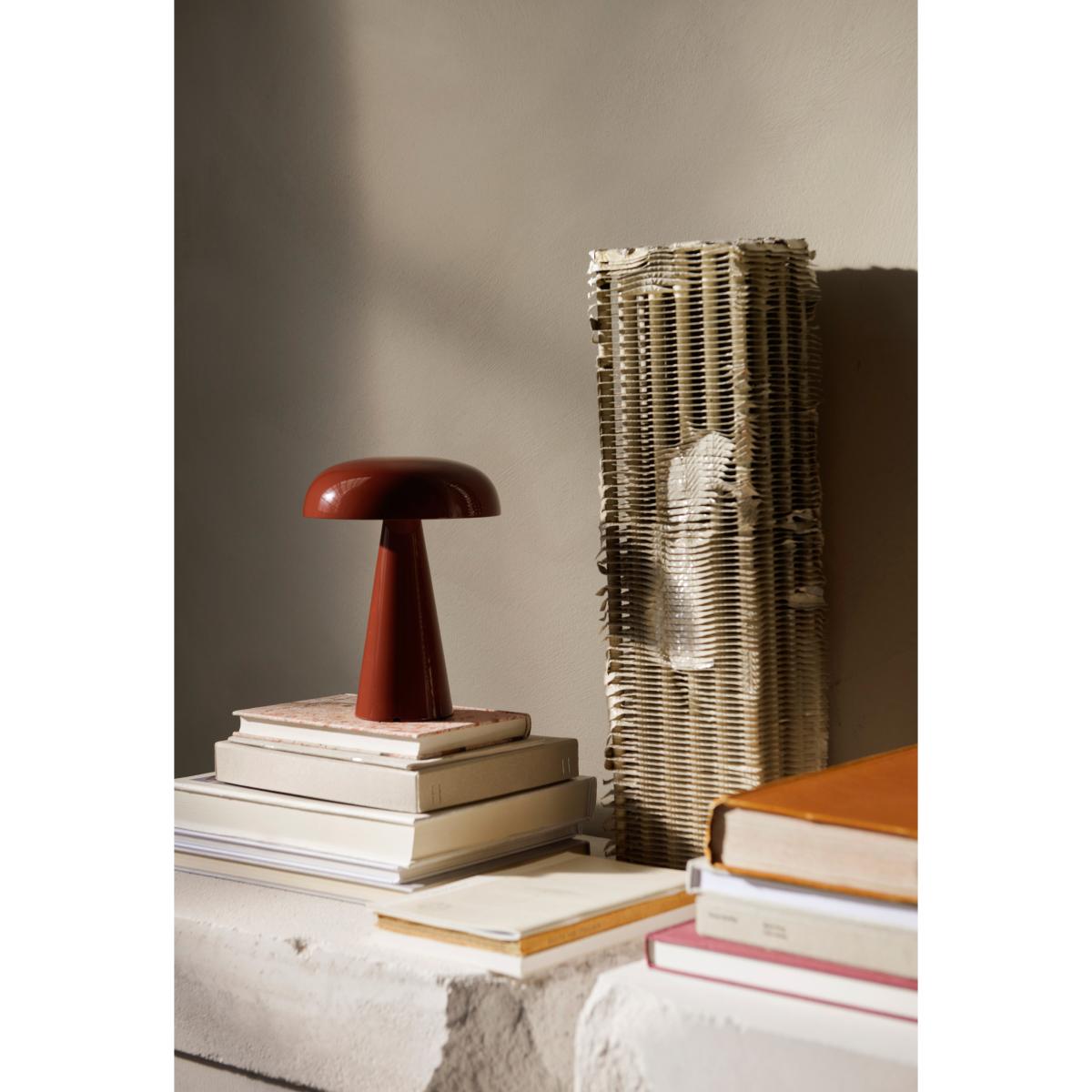 I really like this little lamp because of its bold, sculptural shape and rich red-brown hue, which makes it a standout piece in any space. It works particularly well in contemporary or mid-century inspired interiors, where its playful yet refined design can be highlighted on side tables, bedside units, or even as a statement piece on a desk. To style it effectively, consider pairing it with muted or neutral colours to let its colour and form shine, or complement it with other warm tones for a cosy, inviting effect. Practical tips include using it in spots where soft, ambient light is needed, and keeping the surrounding decor minimal to let its distinctive silhouette be the focal point.