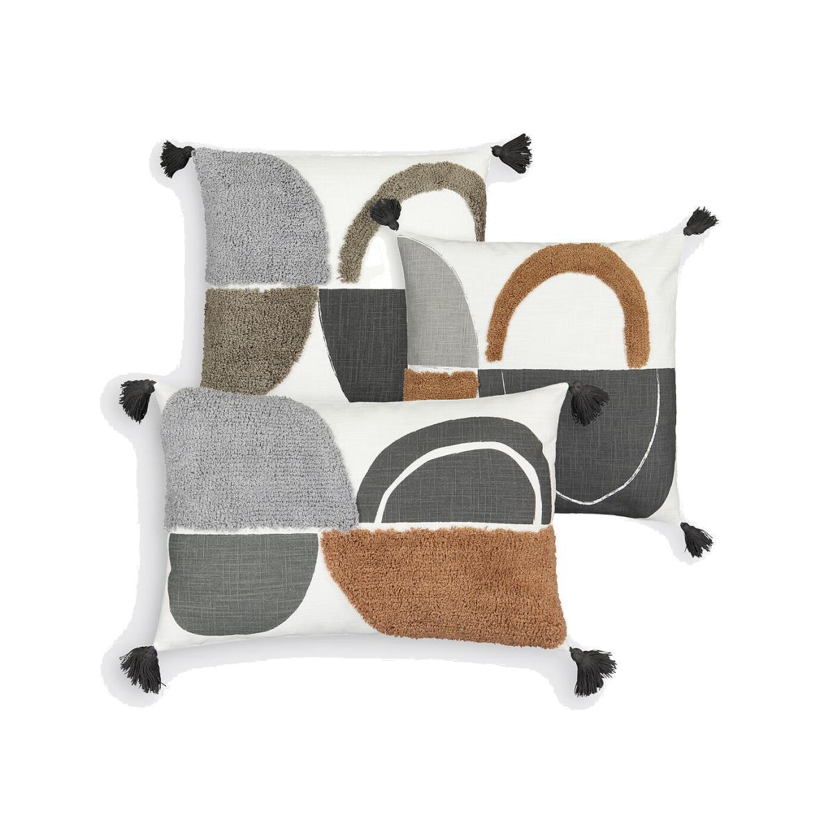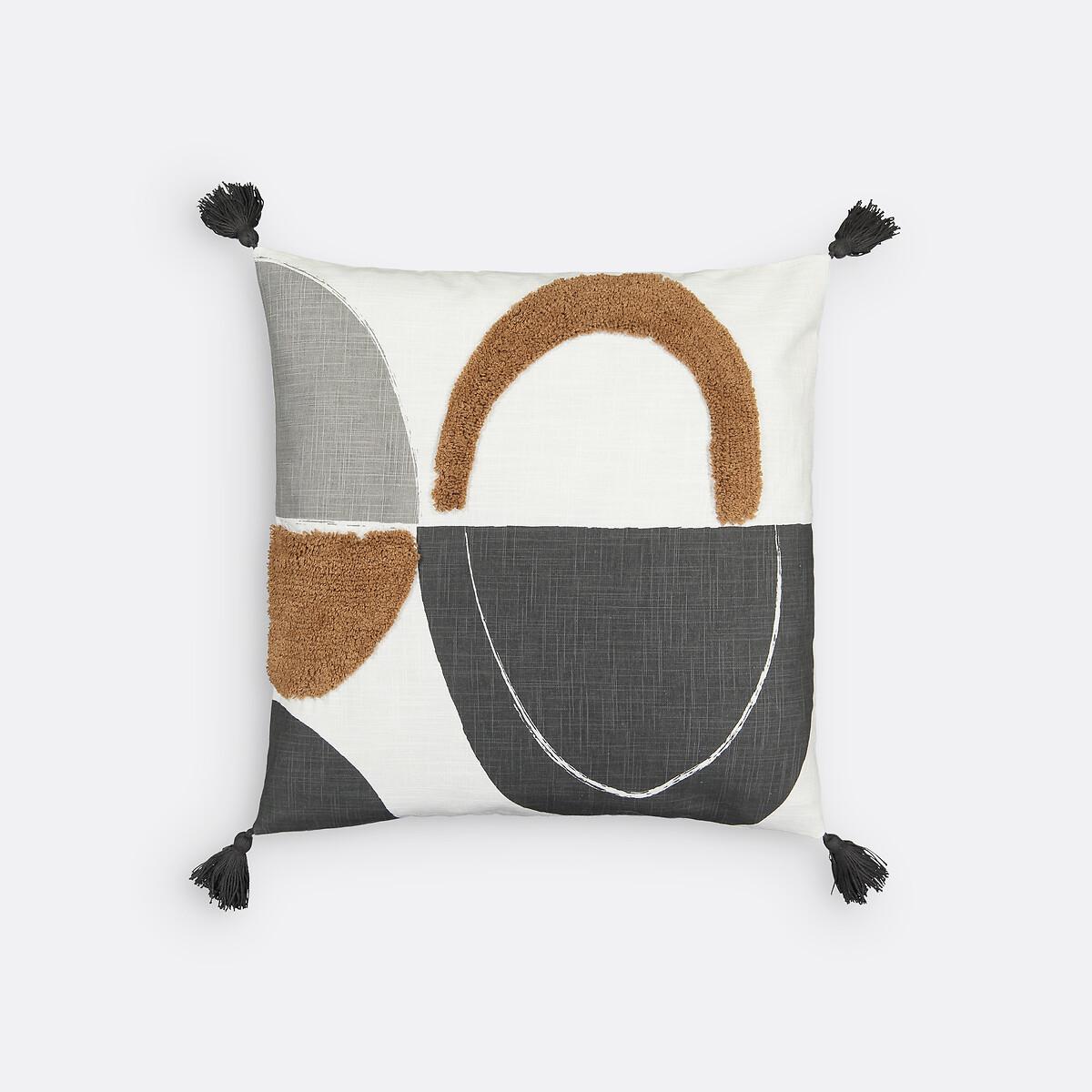 Stylish and tactile, this Comoe cushion cover is embellished with differently textured fabrics to delight the senses. When Scandinavian style is inspired by the elements of nature, the result is a cushion cover full of style. Product Details • 100% cotton canvas • Front tufted and printed pattern • Plain on back • Zip fastening • Tassel accessory • Dimensions • 50 x 50cm