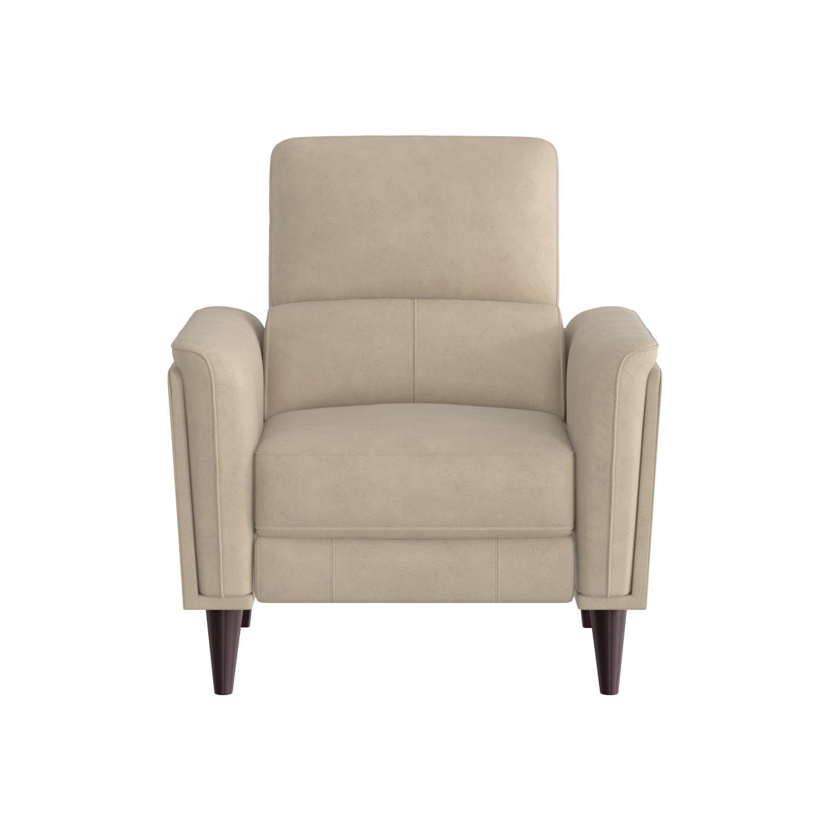 Compact living room? Small is both beautiful and comfortable with our contemporary Klein range of sofas, armchairs and footstools. Specifically designed for modern homes, these neatly-proportioned pieces supersize your comfort with power recliners, telescopic power headrests and built-in USB charging ports, all of which makes it easy to find your perfect reclined position – and stay in it while you relax. Every piece in the range is available in 100% real leather and high-quality fabric, and both upholstery choices come in a fabulous selection of colours so you can go big and bold or subtle and sophisticated. The Klein range is exclusive to Furniture Village. This power recliner armchair may be designed for more compact living rooms but we think you’ll agree that it’s big on style and comfort. Why you'll love it Meet your new armchair – the Klein compact power recliner chair with telescopic headrest. Contemporary off-the-floor design for smaller spaces. Made for relaxation with power recliner, telescopic power headrest and USB charging. In a huge choice of colours from bright and bold to subtle and neutral. Beautifully finished with stitching detail and wood legs. Also available without the power recliner and power headrest. This chair can be yours with 100% leather upholstery. Handmade exclusively for Furniture Village. This fabric power recliner chair with telescopic headrest is part of our Klein range. What you need to know Medium comfort level. Seat suspension: no-sag spring. Seat cushion: foam and fibre with an inner coil spring. Back support: rubber webbing. Back cushion: foam and fibre. Feet are removable. The non-recliner version of this chair does not have a telescopic headrest. Please allow time for new recliners to ease. Minor gaps are necessary to ensure ease of recliner motion and may be exaggerated depending on floor type. Some fabrics can show wear on areas of more use or in direct sunlight. Please read our upholstery care guide for more advice.