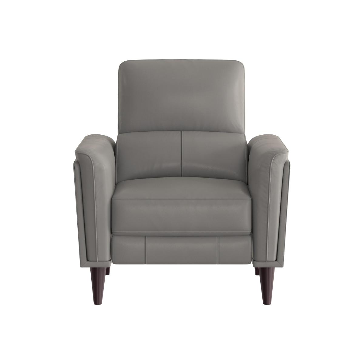 Compact living room? Small is both beautiful and comfortable with our contemporary Klein range of sofas, armchairs and footstools. Specifically designed for modern homes, these neatly-proportioned pieces supersize your comfort with power recliners, telescopic power headrests and built-in USB charging ports, all of which makes it easy to find your perfect reclined position – and stay in it while you relax. Every piece in the range is available in 100% real leather and high-quality fabric, and both upholstery choices come in a fabulous selection of colours so you can go big and bold or subtle and sophisticated. The Klein range is exclusive to Furniture Village. With power recliner and telescopic headrest, this luxe leather armchair can be precisely adjusted to suit you. Come home to real comfort – and on-trend style – every day of the week. Why you'll love it Customised comfort is yours with this leather power recliner chair with telescopic headrest. Contemporary off-the-floor design for smaller spaces. Made for relaxation with power recliners, telescopic power headrest and USB charging. 100% real leather upholstery in a fantastic choice of classic and modern colours. Beautifully finished with stitching detail and wood legs. Also available without power recliners. Handmade exclusively for Furniture Village. This leather power recliner chair with telescopic headrest is part of our Klein range. What you need to know Medium comfort level. Seat suspension: no-sag spring. Seat cushion: foam and fibre with an inner coil spring. Back support: rubber webbing. Back cushion: foam and fibre. Feet are removable. The non-recliner version of this chair does not have a telescopic headrest. Please allow time for new recliners to ease. Minor gaps are necessary to ensure ease of recliner motion and may be exaggerated depending on floor type. Leather has unique marks and characteristics with variation in colour and texture. Leather softens with use. Smoothing the tops of leather cushions prevents signs of visual comfort. Please read our upholstery care guide for more advice.