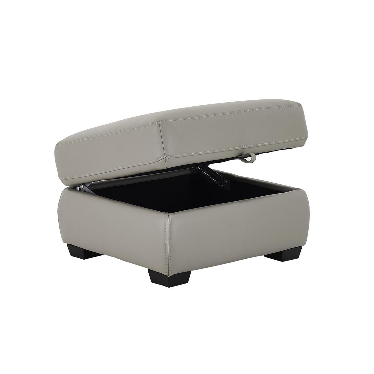 Contemporary, cleanly contoured footstool Generously cushioned top Light or dark wooden feet Can be used as extra seating Available in a wide choice of leathers, fabrics and colours Plenty of useful storage inside New and improved design with higher density foam interiors and no- sag spring Complements the Compact Collection of sofas and chairs World of Leather - Compact Collection Petit Leather Storage Footstool - Grey