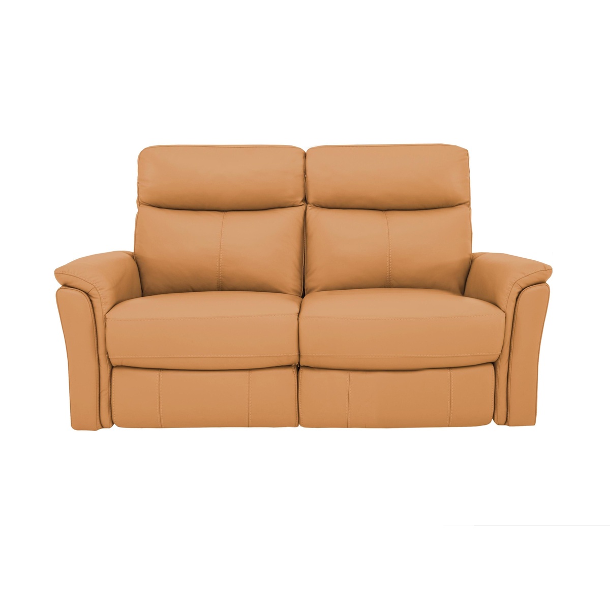 Compact in size, and beautifully upholstered in soft premium leather, the World of Leather Piccolo two seater recliner sofa is seriously comfortable. Sink into the deep higher density foam with fibre seat cushions that keep their shape for longer, and enjoy the luxurious support of the sprung seats, integral padded headrests and soft arm cushions. Then put your feet up at the touch of a button, if you choose the power recliners. This small sofa has plenty of contemporary style with soft curves and simple lines. The Piccolo two seater recliner sofa with solid hardwood rails is part of Furniture Villages versatile Compact Collection, stylish seating thats designed to suit smaller spaces. Made by World of Leather and exclusive to Furniture Village.