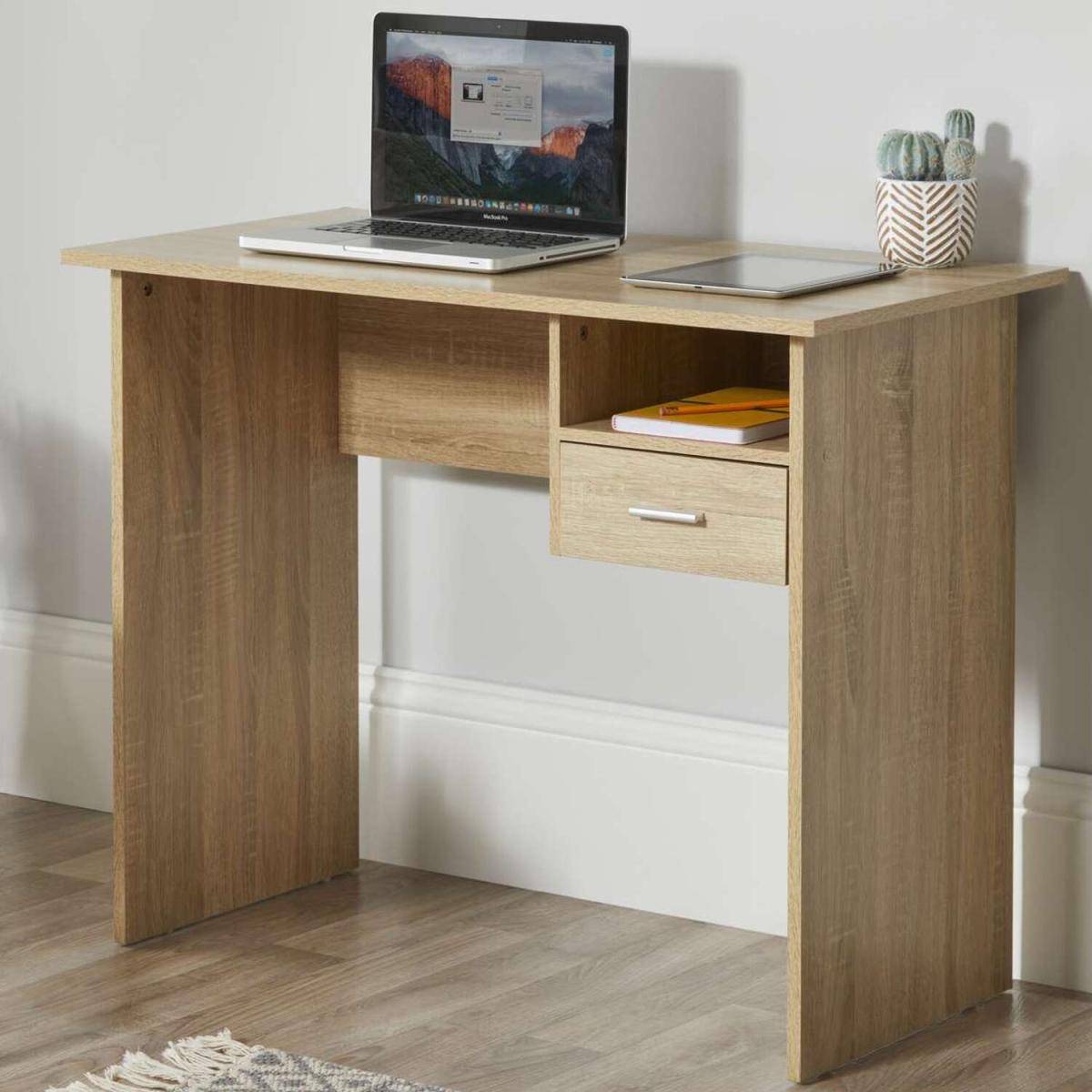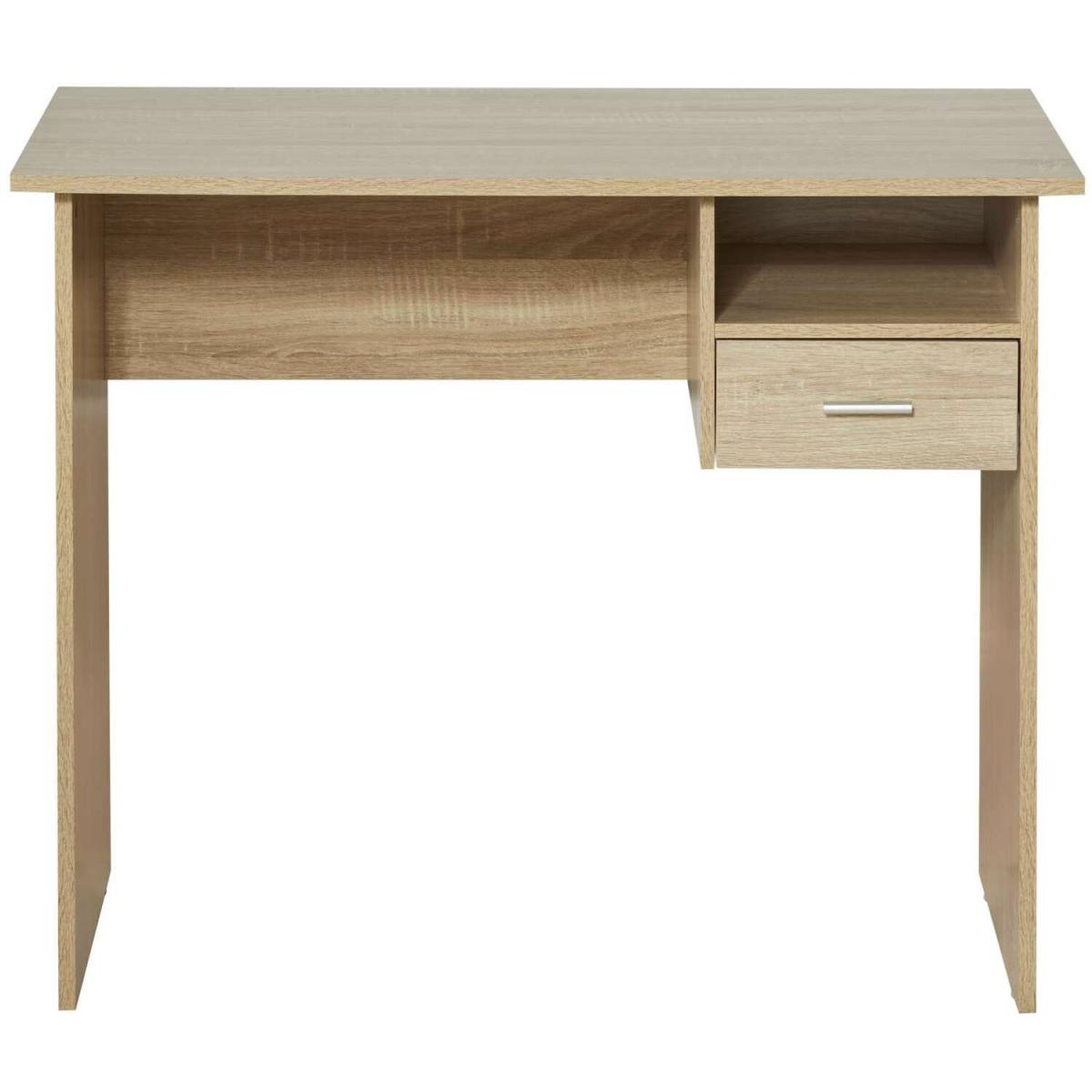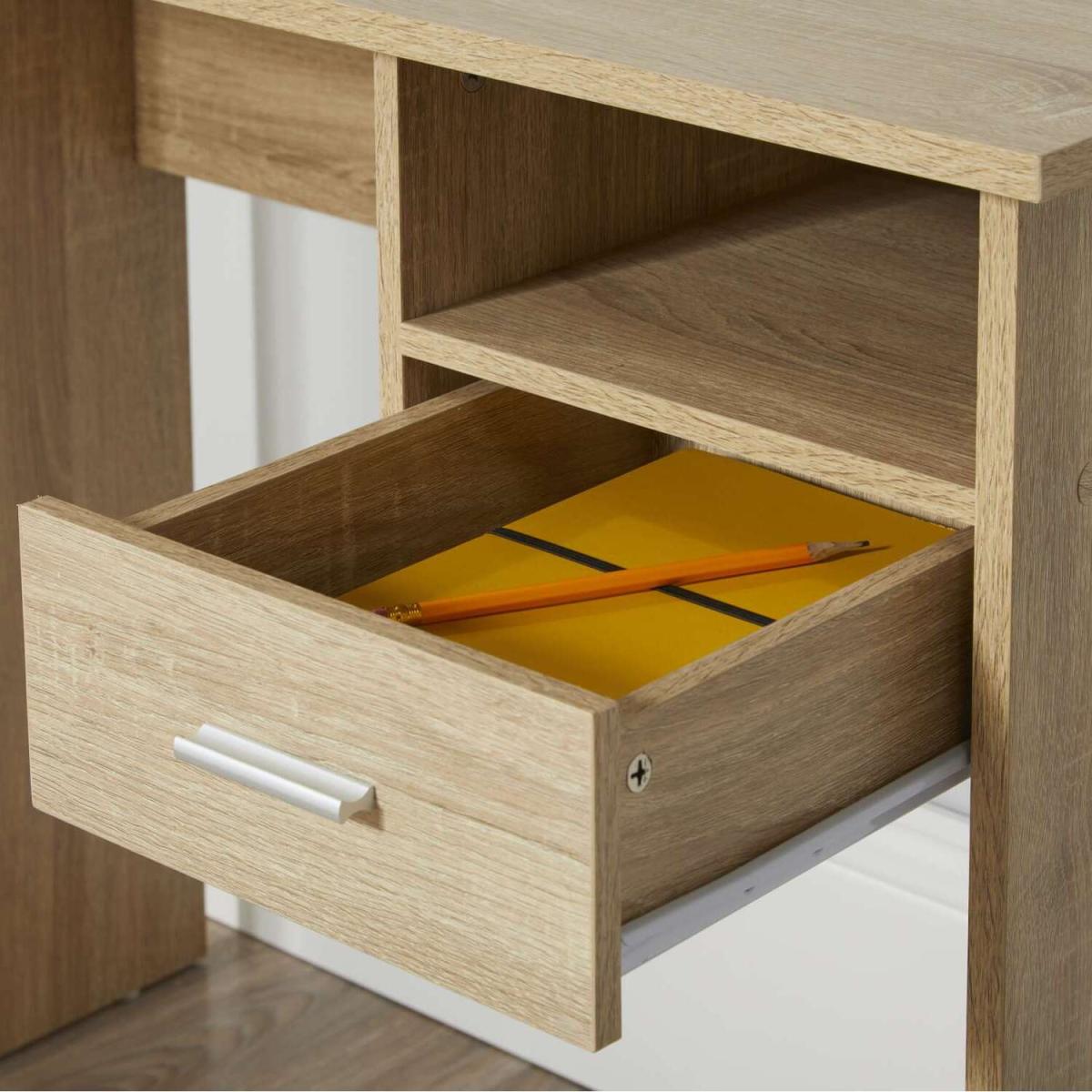 Compact Desk with One Open Side Shelf and One Drawer Beech Effect - Brown