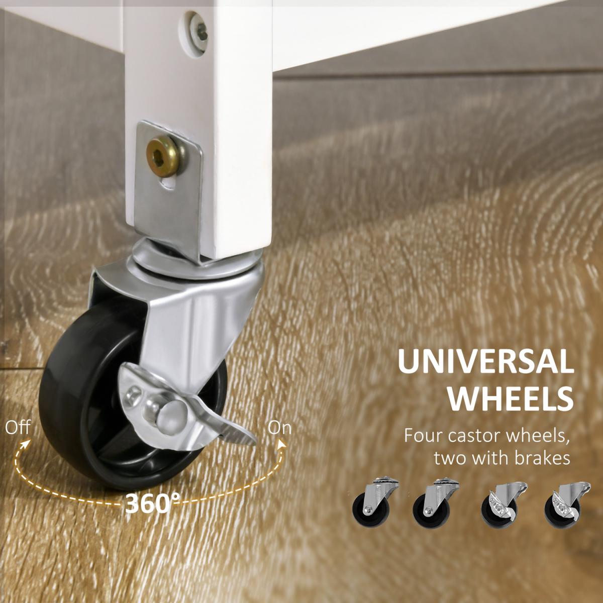 Compact Kitchen Trolley Utility Cart on Wheels with Wine Rack - White