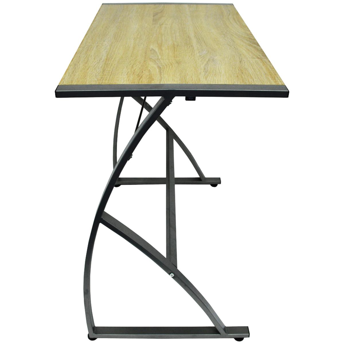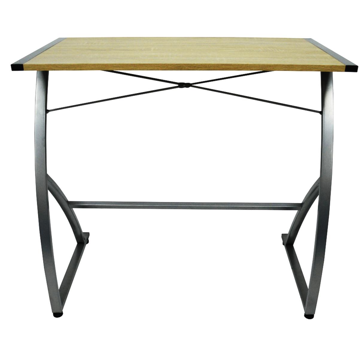 This stylish compact desk is ideal for use as a workstation for crafts, homework, or computers. With silver metal legs and an oak finish top, it will look great in any office area.